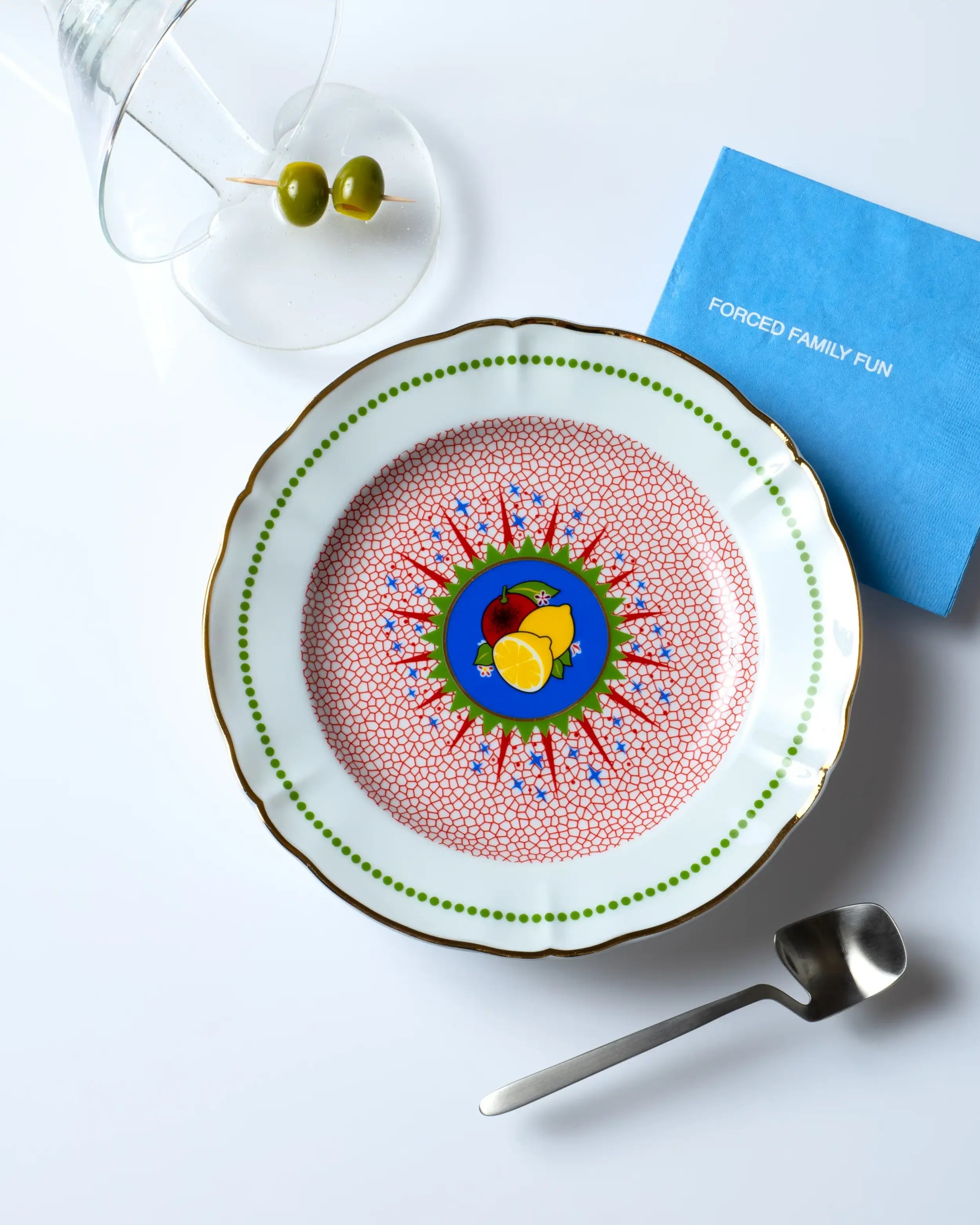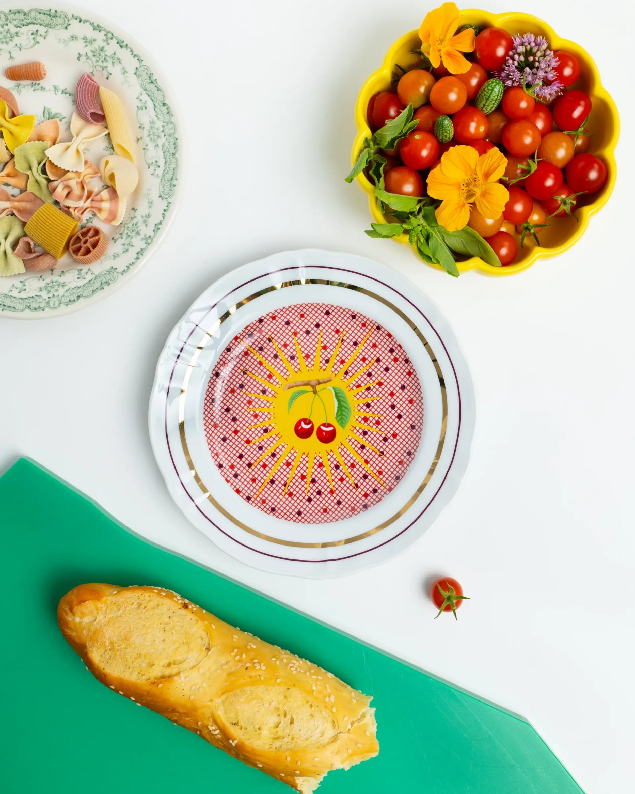 This fruits inspired plate is ideal for fruit, desserts, or even as an accent piece in a curated dining set. It embodies how to set an elegant dining table with charm and color, encouraging creativity and personalization. The balance between graphic playfulness and artisanal tradition makes it one of the best plates for modern dining. With Sam Baron x Bitossi, design becomes a language of emotion; a way to express identity through pattern, palette, and the pure pleasure of gathering around a table.