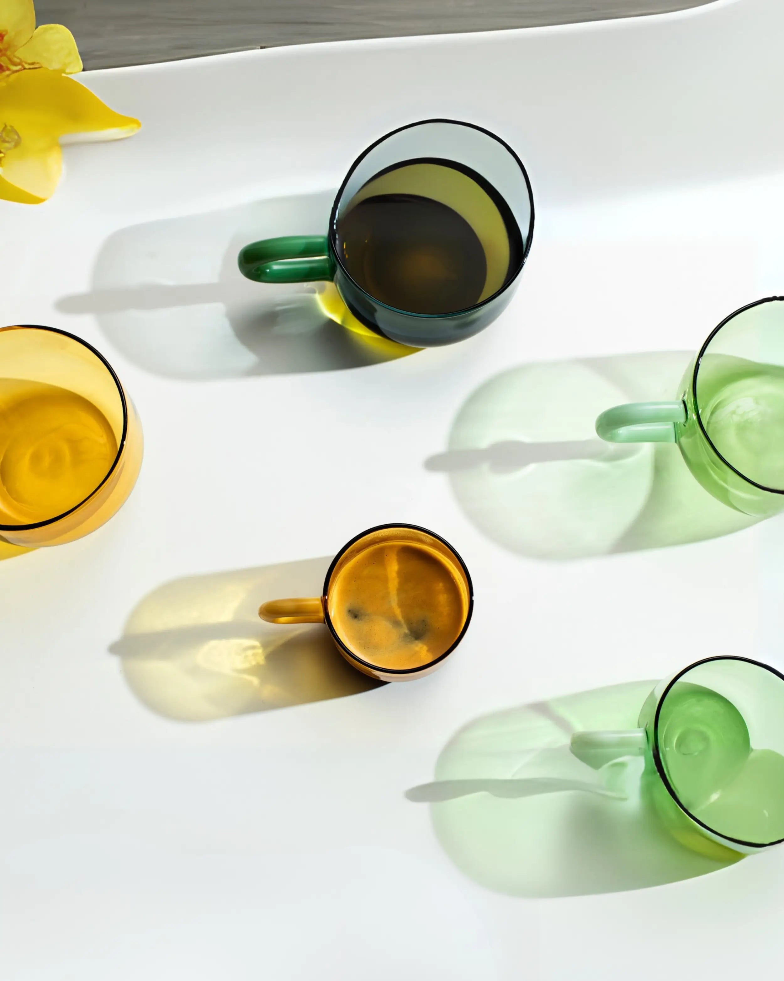 متوفر ككوب قهوة وكوب شاي، وبألوان مثل البترول، الأصفر، والأخضر، تتكيف مجموعة Coffee&T مع مزاجات وديكورات مختلفة. تؤكد لغة التصميم لـ Luglio على اللعب الممزوج بالوظيفة، محولة الأشكال البسيطة إلى تفاصيل لافتة. يعكس نهجها الفلسفة التي تقول إن حتى أصغر الأشياء يمكن أن تثري الطقوس اليومية إذا صممت بعناية. كل قطعة يتم تشكيلها يدويًا بواسطة الحرفيين، والفروق الدقيقة تعكس أصلها اليدوي. هذه الاختلافات الطفيفة، سواء في شدة الظل أو في الانحناءة الرقيقة للمقبض، تضمن أن لا يكون هناك كوبان متماثلان تمامًا، مما يضيف إلى جاذبيتها القابلة للجمع.