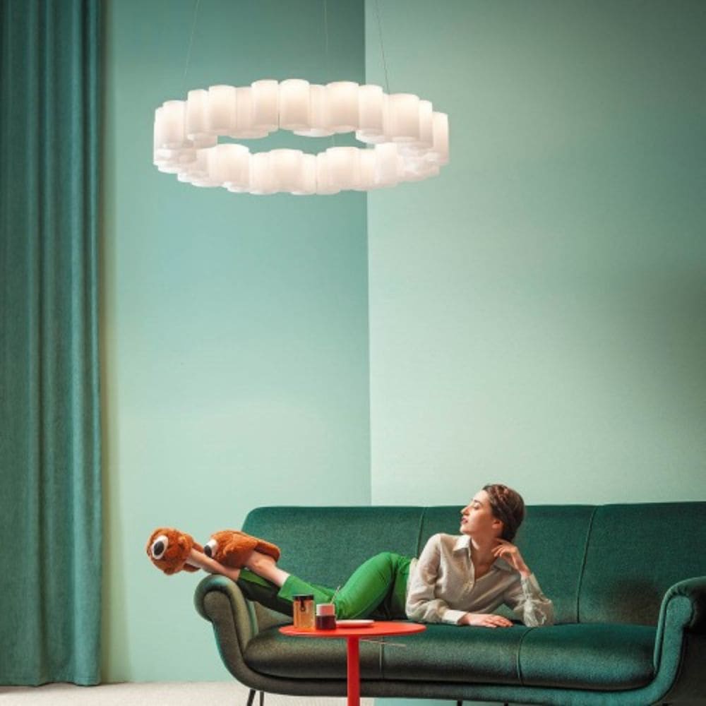 بيو وتيتو توسو يقدمان مصباح التعليق هاني بقطر 58 سم: تكرار لوحدات من البولي كربونات المصبوبة بالحقن التي تخلق أشكالًا هندسية. هاني هو مصباح بتصميم حديث ومبتكر وعملي بفضل الضوء الدافئ والموزع الذي ينبعث منه تدفق من الضوء المباشر وغير المباشر. اشترِ الآن مصباح هاني على موقع ShopDecor!