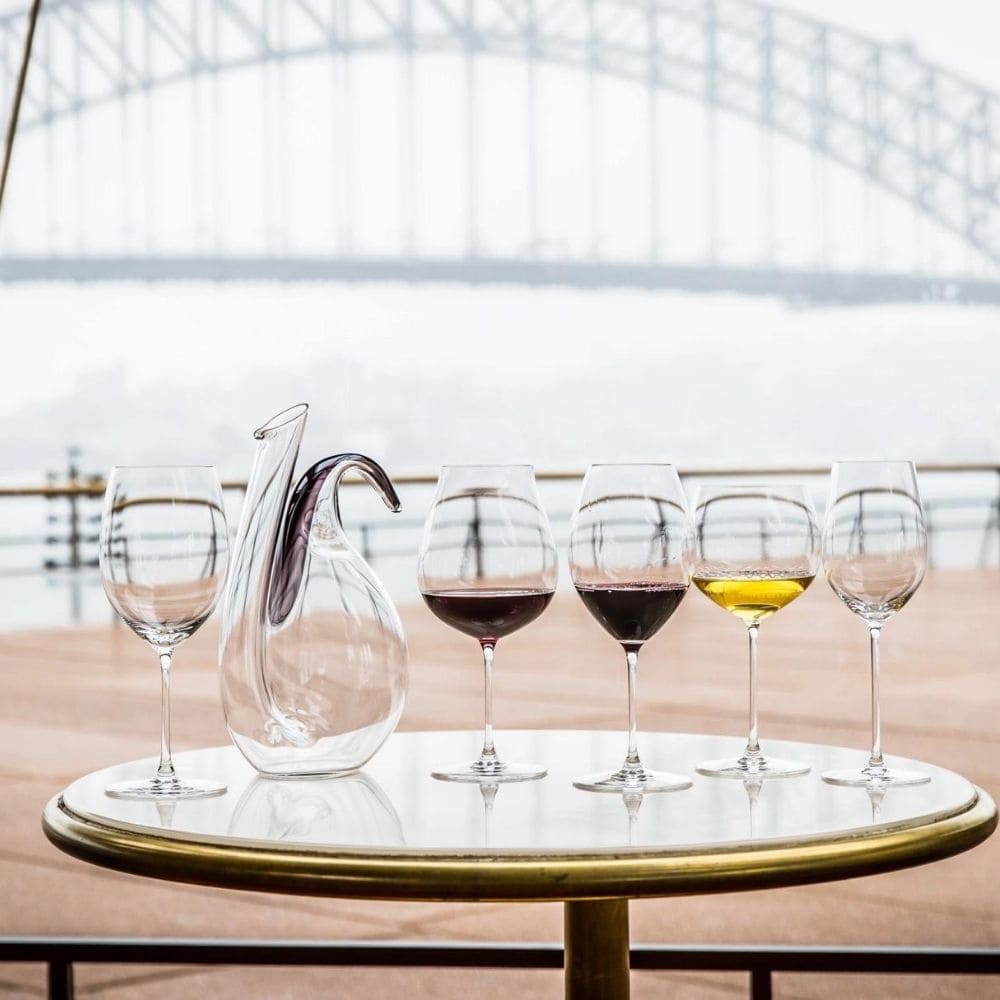 قم بتعزيز تجربة تناول النبيذ لديك مع تصميم Riedel : أكواب وزجاجات مميزة، مثل كأس بوردو سوبرليجيرو وديكانتر مامبا.
