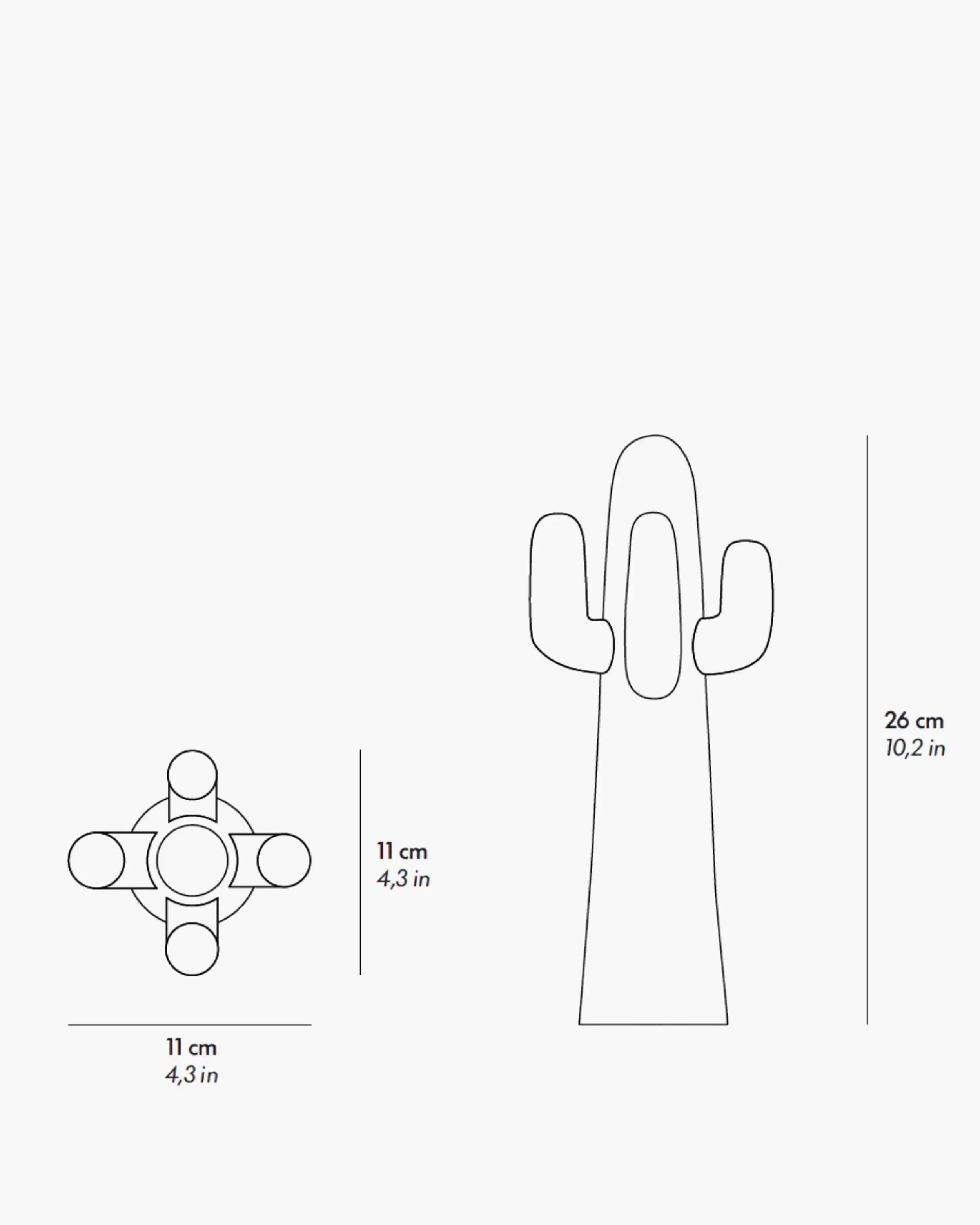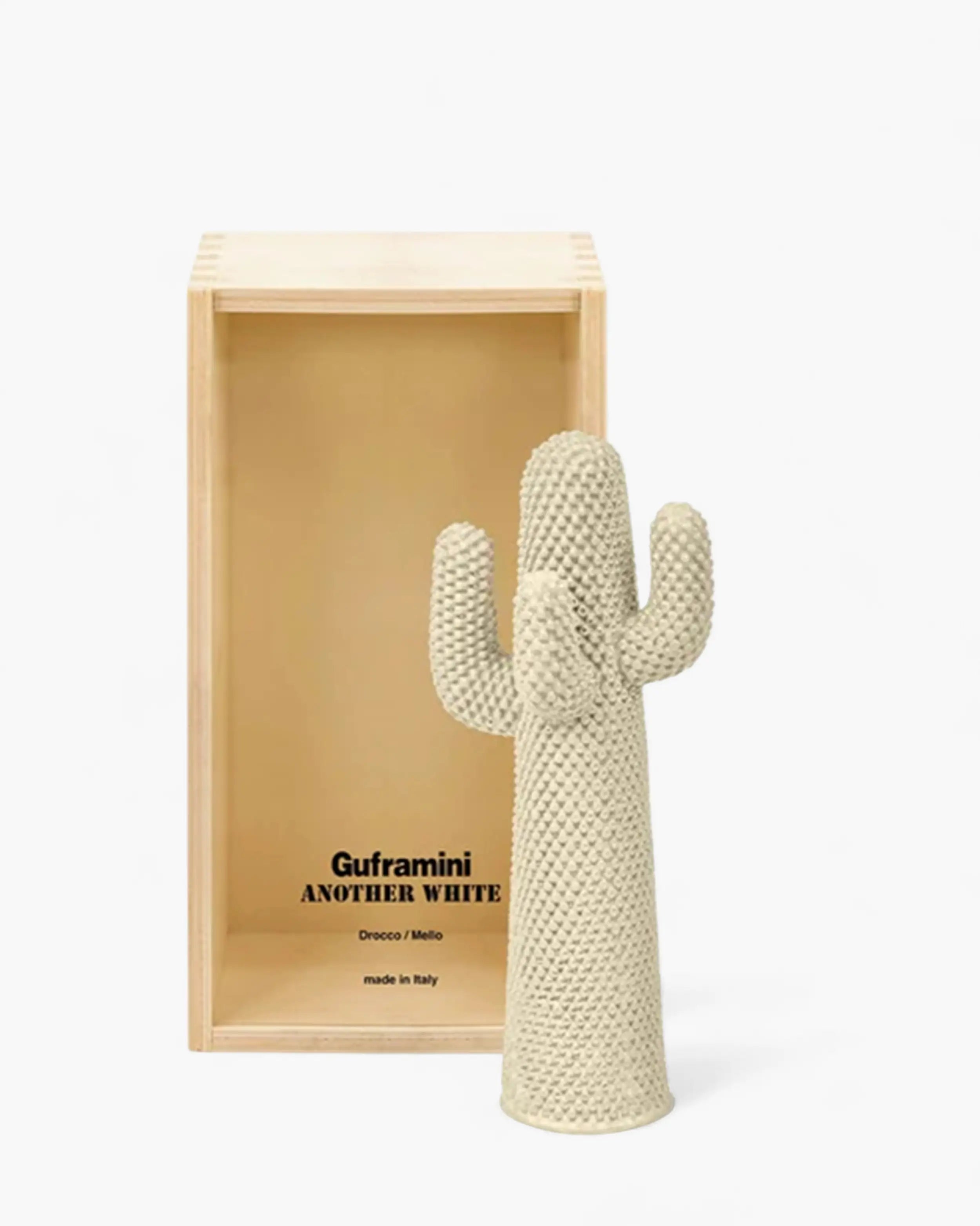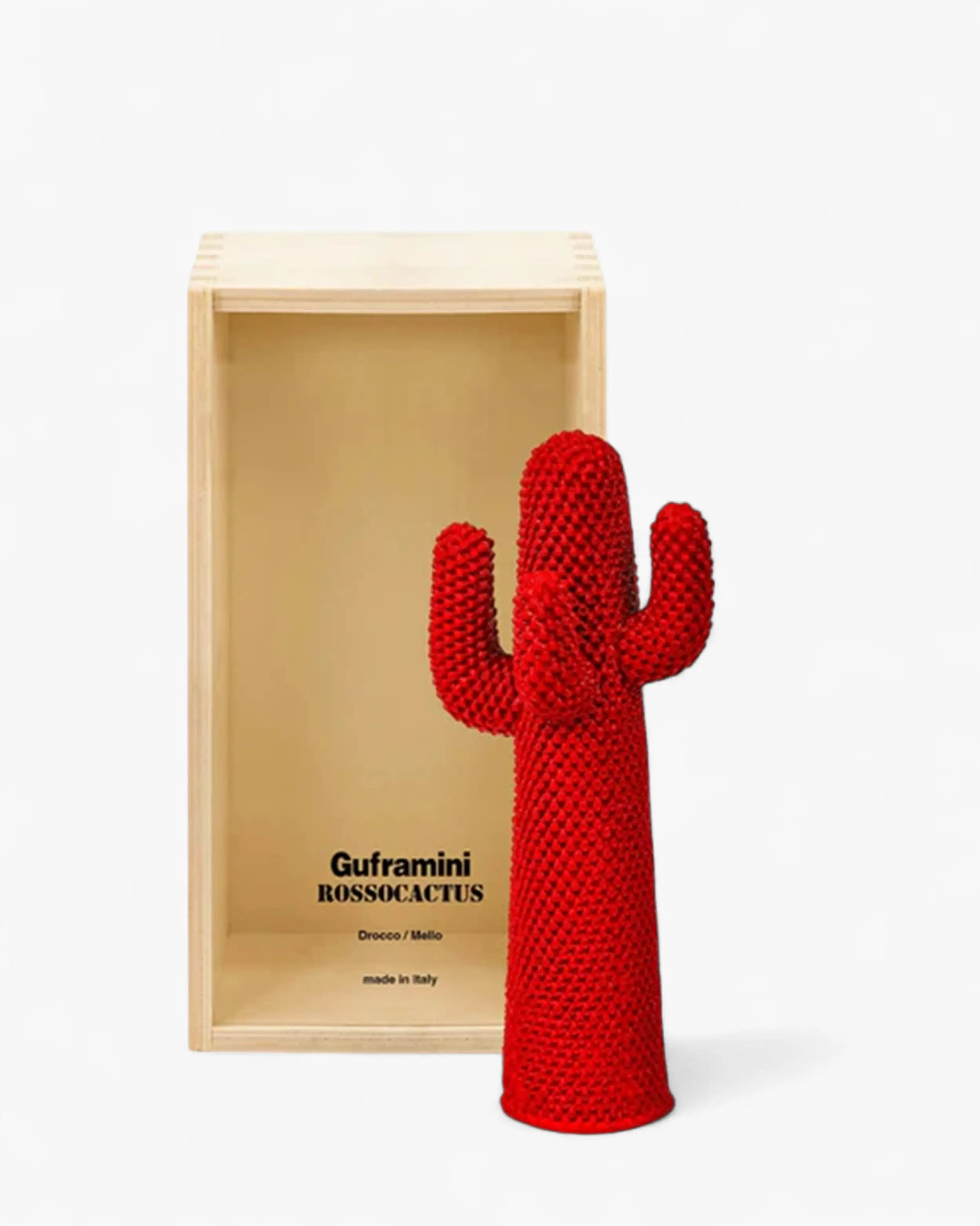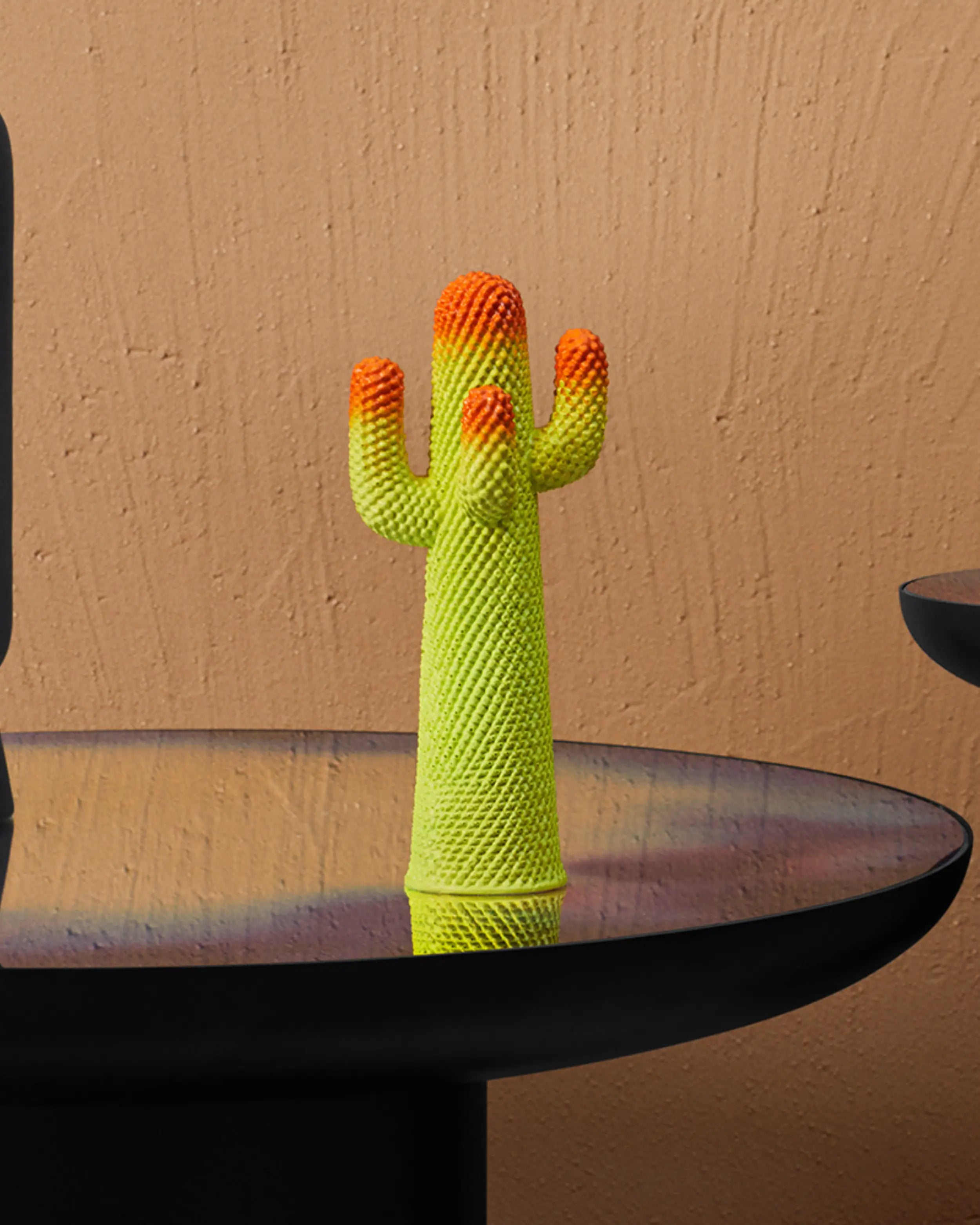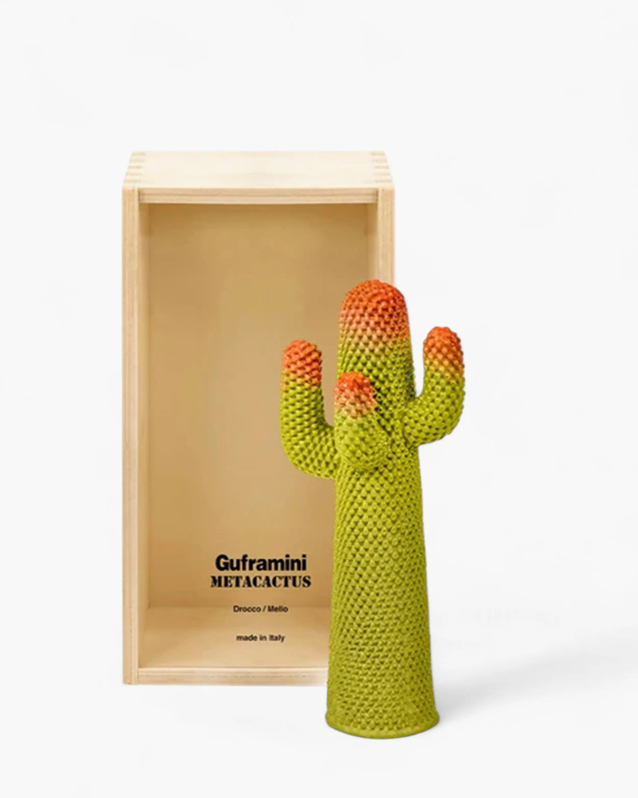 Guframini Cactus، نسخة بمقياس 1:8 تجمع بين الفكاهة والرمزية والفن في قطعة قابلة للجمع يمكن وضعها على مكتب أو رف أو داخل ديكور مختار بعناية. وعلى الرغم من صغر حجمه، فإنه لا يزال يطمس الخط الفاصل بين الفن والأثاث والاستفزاز المرح.