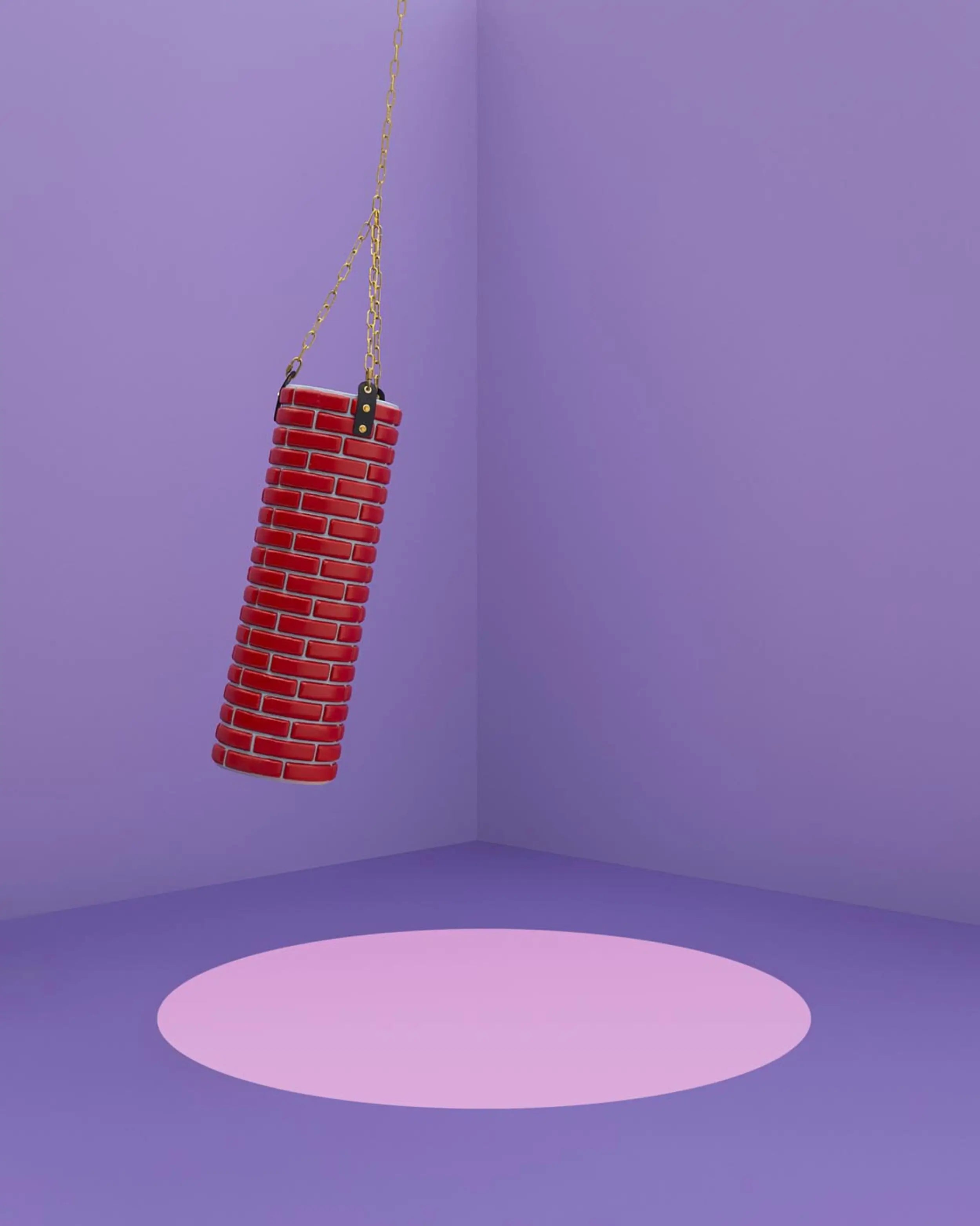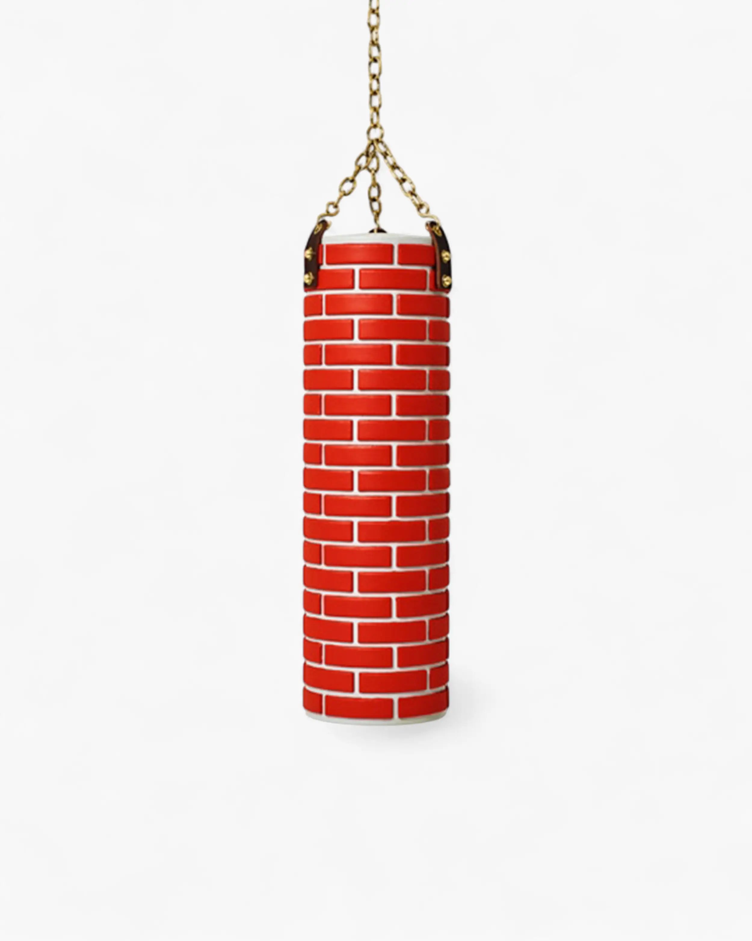 مصنوع بالكامل من البولي يوريثان الناعم ومُنجز يدويًا، يلتقط كيس الملاكمة من Studio Job جوهر التجريب الراديكالي. السطح، المرسوم بعناية باللون البرتقالي الزاهي، يحاكي ملمس الطوب الحقيقي، مما يخلق وهمًا لافتًا. هذا الانقلاب؛ يبدو صلبًا لكنه ناعم الملمس؛ يجسد فلسفة التصميم لـGufram "الحقيقي-الزائف"، حيث يتداخل الواقع والخيال بطرق غير متوقعة. يطمس الجسم الخط الفاصل بين الوظيفة والاستعارة: يمكن أن يكون كيس ملاكمة تفاعلي، عنصر ديكور تمثيلي، أو قطعة فنية راديكالية. مادته الساخرة تدعو المستخدمين للتفكير في عبثية العدوان المحول إلى تصميم.قطعة بيان راديكالية