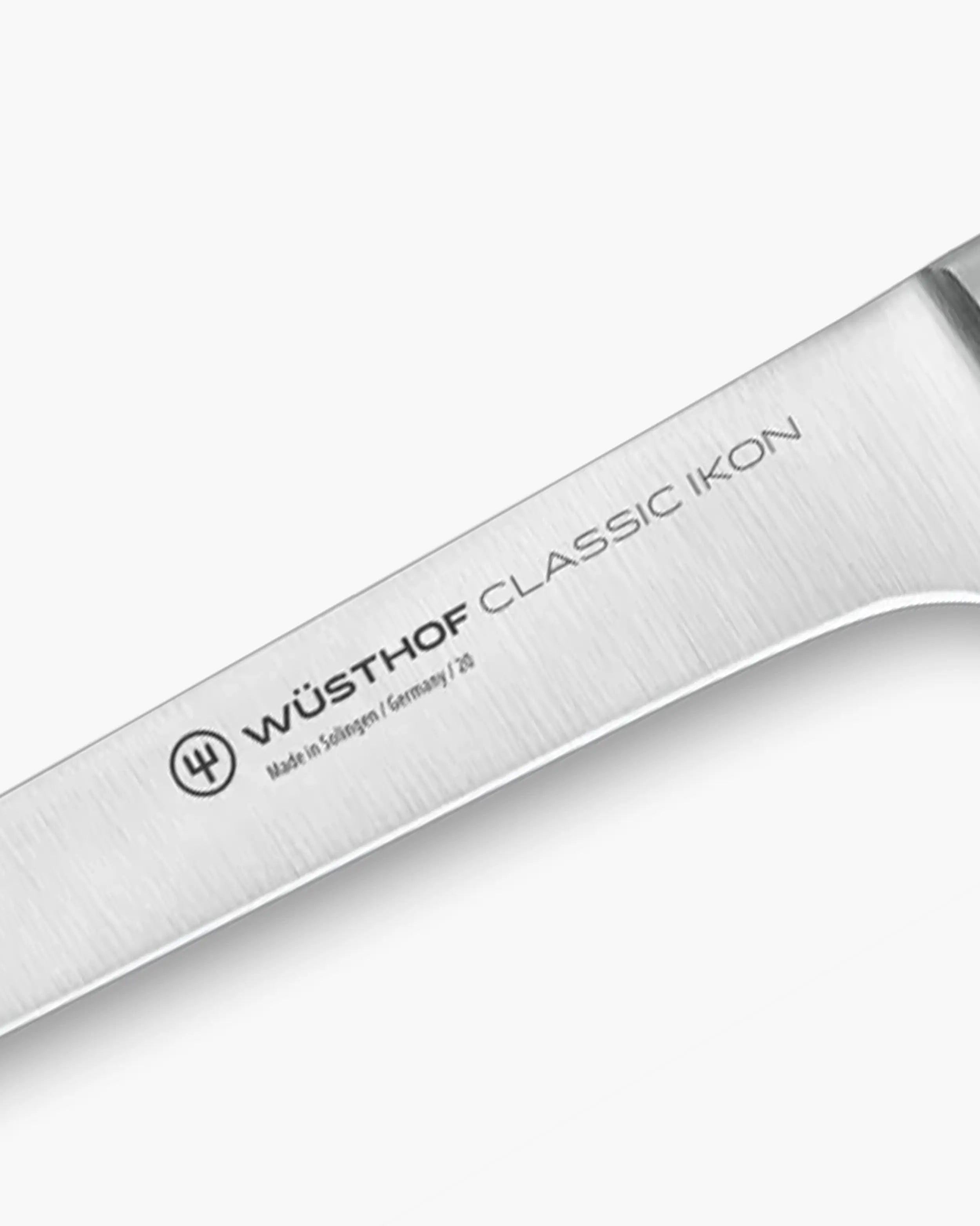 سكين Wüsthof Classic Ikon boning knife 14 cm – 5 in هو الأداة المفضلة لأولئك الذين يقدرون الدقة والتحكم عند العمل مع اللحوم أو الدواجن أو الأسماك. مصمم بشفرة رفيعة ومنحنية، يسمح لك wusthof classic ikon boning knife بالتنقل بسهولة حول العظام والمفاصل والأوتار. سواء كنت تقلم الدهون أو تزيل العظم من فخذ الضأن، يضمن هذا السكين من Wüsthof أن تكون كل حركة سلسة وحادة ودقيقة.