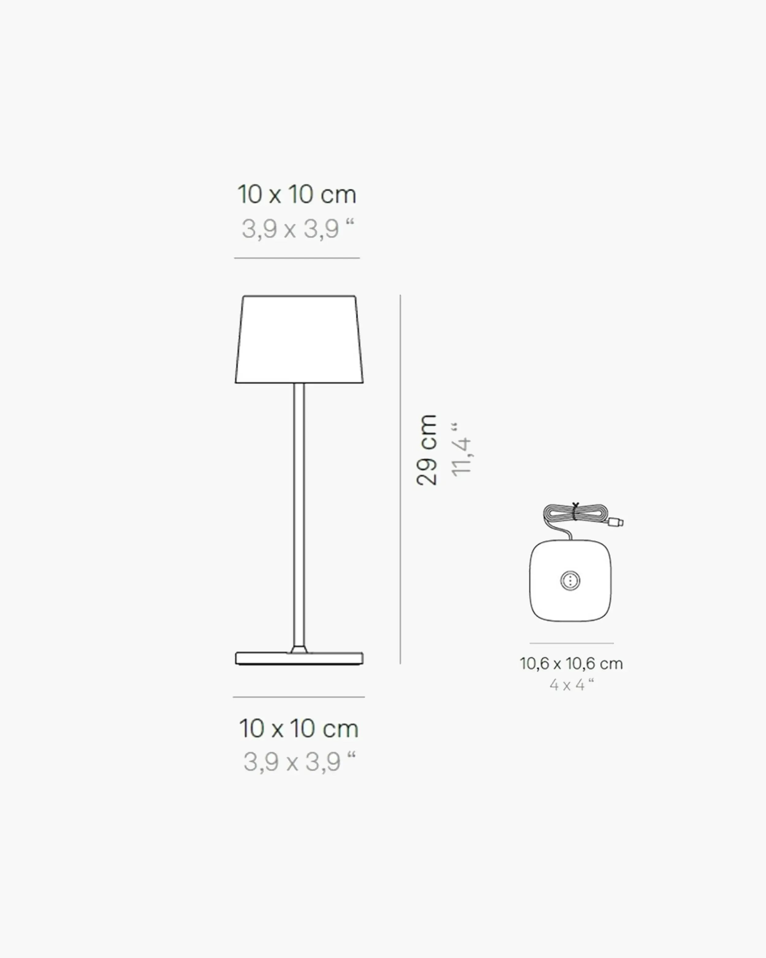 مصباح الطاولة Zafferano Ofelia مصمم للراحة. يوفر هذا المصباح القابل لإعادة الشحن إضاءة مستمرة تصل إلى 9 ساعات ويتطلب فقط 6 ساعات للشحن الكامل باستخدام قاعدة الشحن التلامسية المرفقة. تتوفر أيضًا ملحقات إضافية مثل قاعدة شحن متعددة التلامس أو شاحن USB متعدد المنافذ لضمان استعدادك دائمًا. مثالي للإضاءة أثناء التنقل أو كإضافة دائمة لمنزلك، هذا المصباح هو قطعة رئيسية في مجموعة الإضاءة Zafferano lighting.