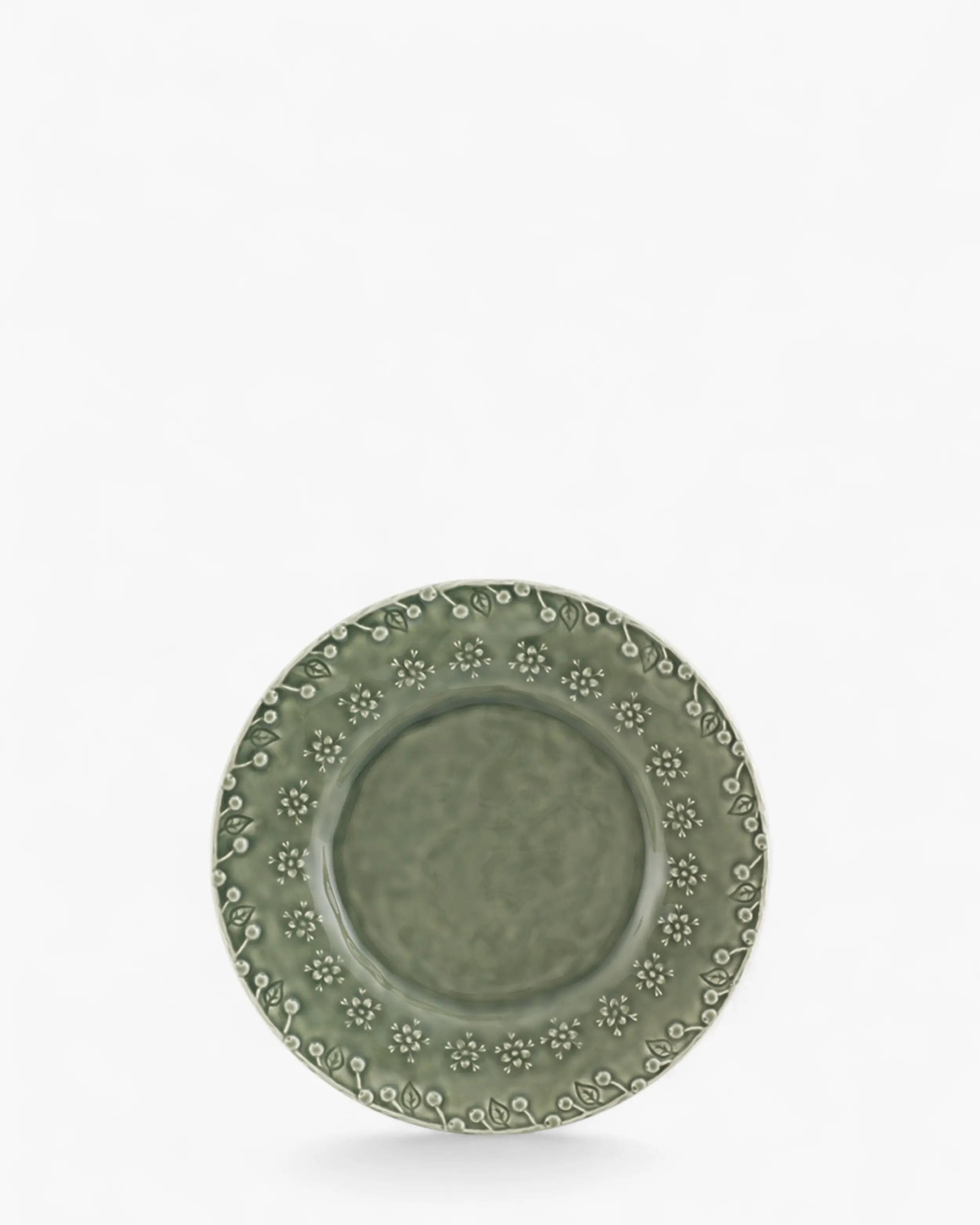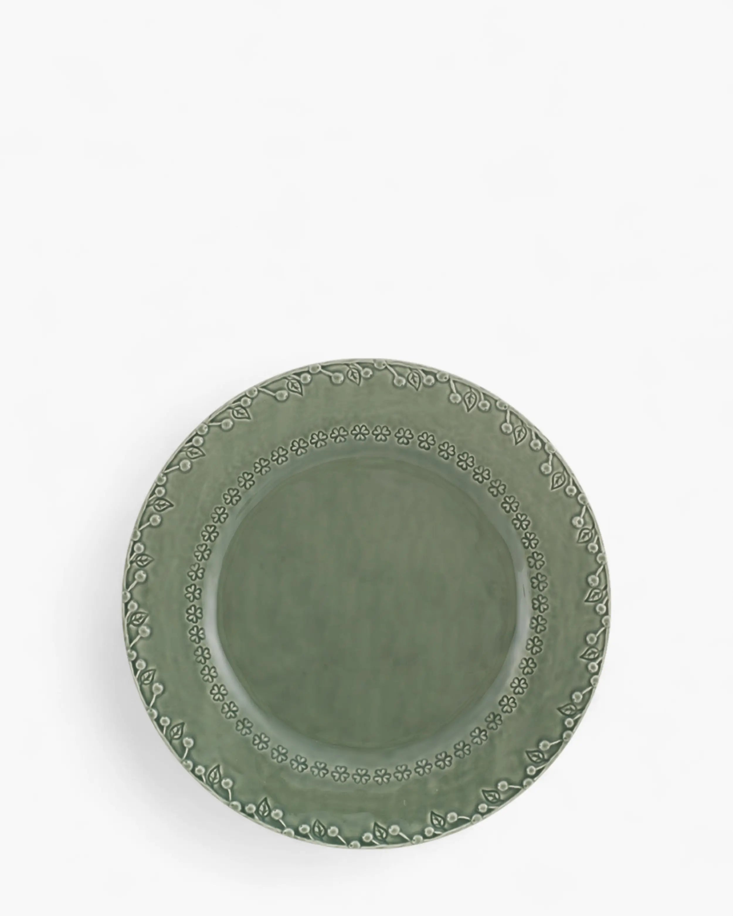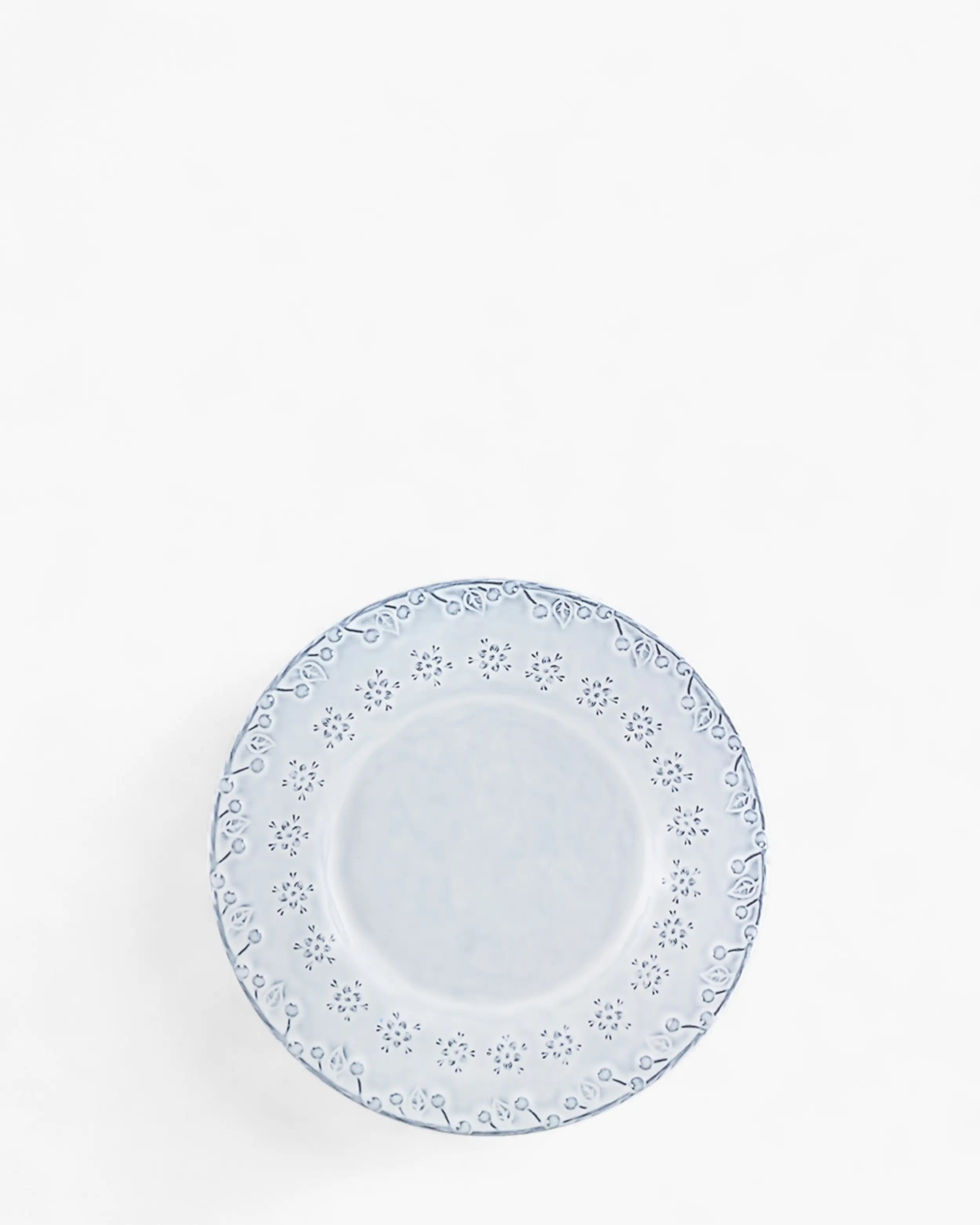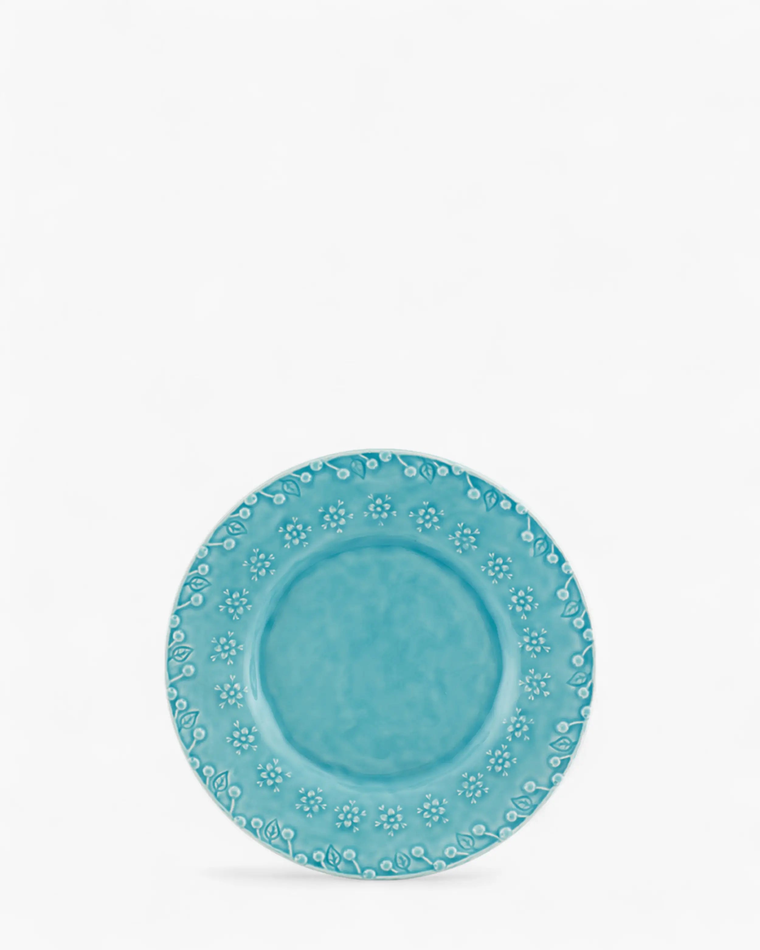 مصنوع يدويًا من التراكوتا ومُنهى بواسطة حرفيين مهرة، يعرض كل طبق نقوشًا زهرية بارزة معززة بطبقة لامعة. تدل التفاوتات الطفيفة على طابعه اليدوي، مما يجعل كل قطعة فريدة. متوفر بقطرين: 23 سم (9 إنش) و29 سم (11.4 إنش)، يتكيف بسهولة مع المقبلات، الأطباق الرئيسية، أو الحلويات. كما تتوفر المجموعة بأربعة تشطيبات راقية: أزرق فاتح، رمادي أنثراسيت، أخضر فاتح، وأبيض عتيق، مما يوفر تنوعًا ليتناسب مع مزاجات وديكورات مختلفة.