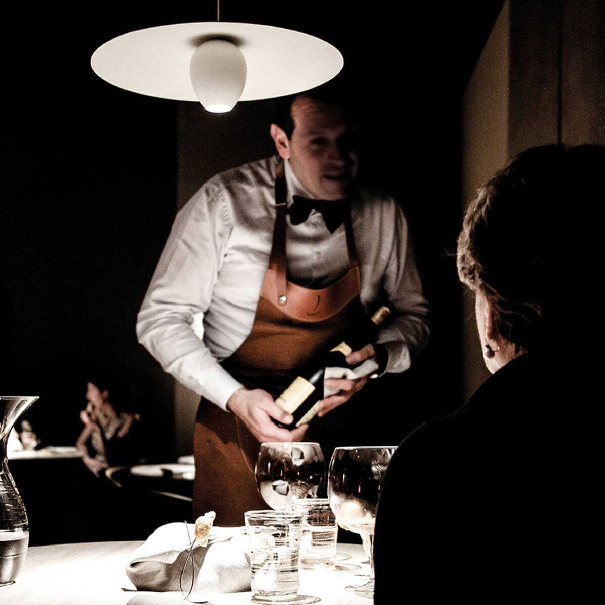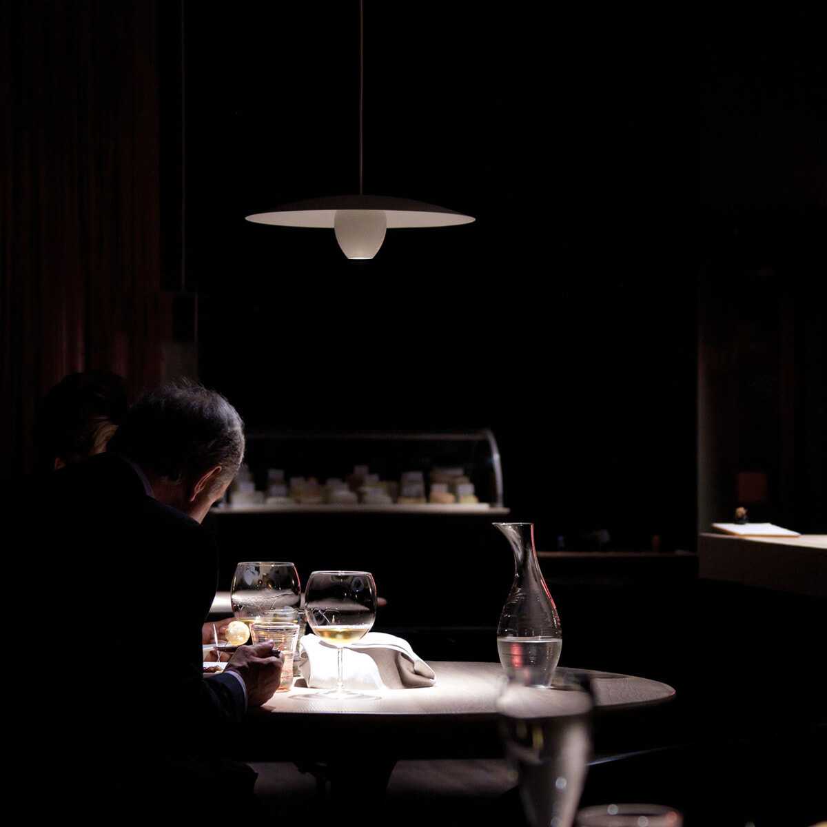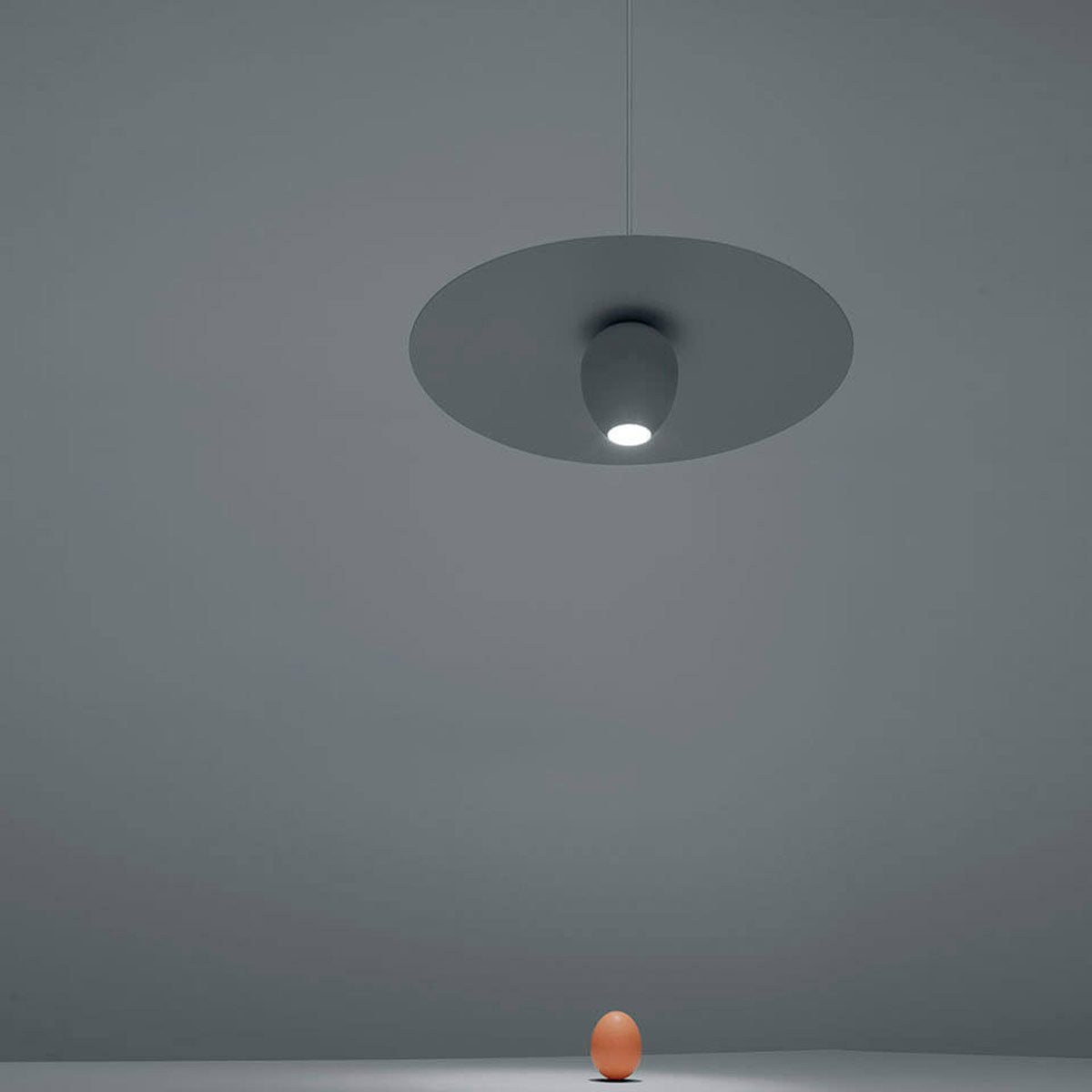 يُصمم ماسيميليانو ورافاييلي ألاجمُو لماركة Davide Groppi مصباح التعليق Ovonelpiatto. الضوء المنبعث من الطبق الكبير فريد ويجعلنا نشعر بأننا الضيوف الوحيدون داخل الغرفة: هذا هو المبدأ الأساسي الذي يقوم عليه تصميم Ovonelpiatto. مصنوع من المعدن المطلي باللون الأبيض غير اللامع، يتميز هذا المصباح بتصميمه بوجود صحن دائري وظل مصباح يذكرنا بشكل بيضة ينبعث منها شعاع من الضوء.