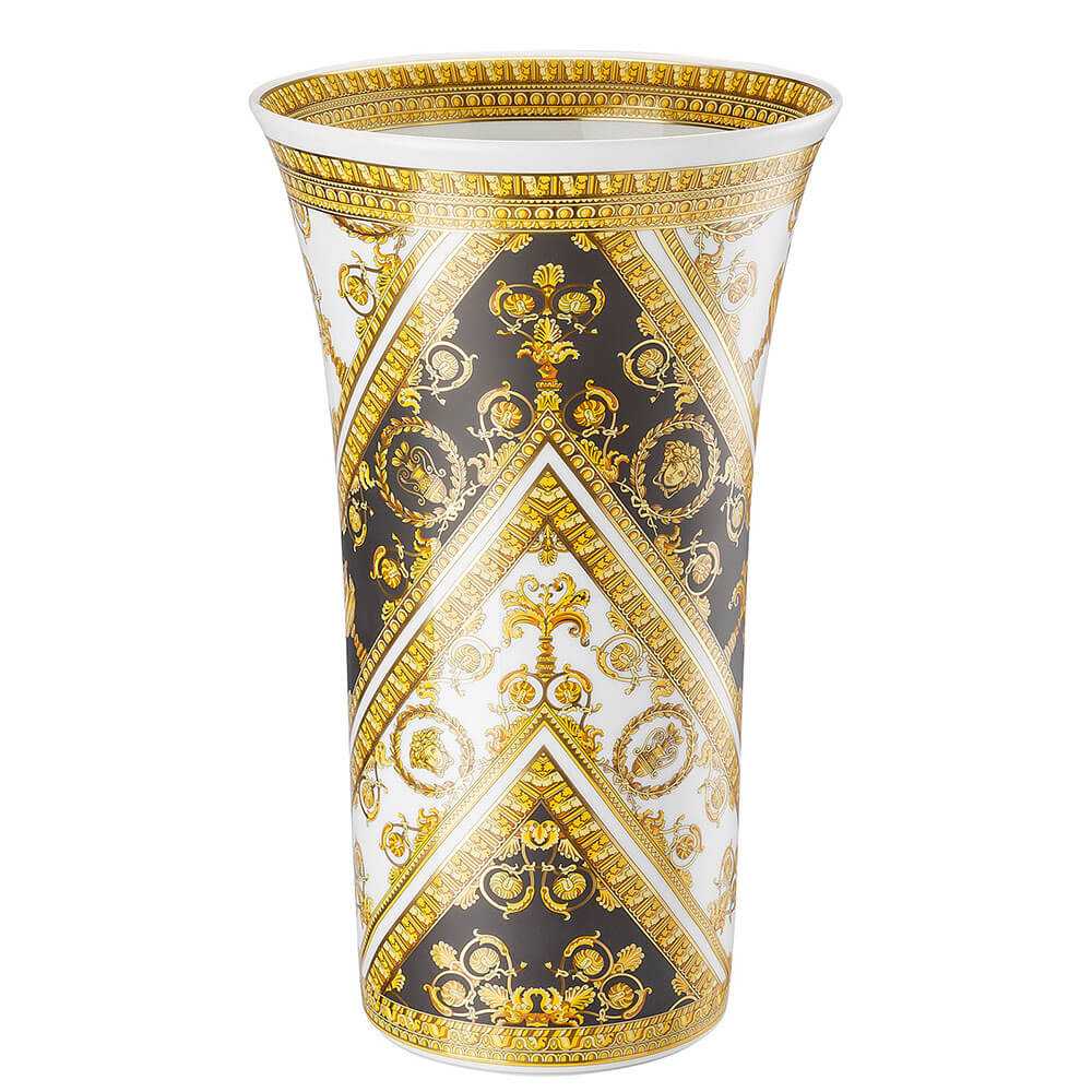 Shop Decor يقترح مزهرية I Love Baroque بارتفاع 34 سم. I Love Baroque هي المجموعة الأنيقة من الأطباق والأكواب والمزهريات وغيرها من إكسسوارات الطاولة التي صممتها Versace Home. تتميز مجموعة I Love Baroque بطبعة الباروك المميزة التي لا تخطئها العين، حيث تتحد الزخارف الذهبية الكلاسيكية والتفاصيل مع الألوان الحديثة، مما يخلق أدوات مائدة وإكسسوارات منزلية فريدة ذات ذوق راقٍ وأنيق. اجعل كل مناسبة مميزة بفن Versace Home الذي لا يخطئ.