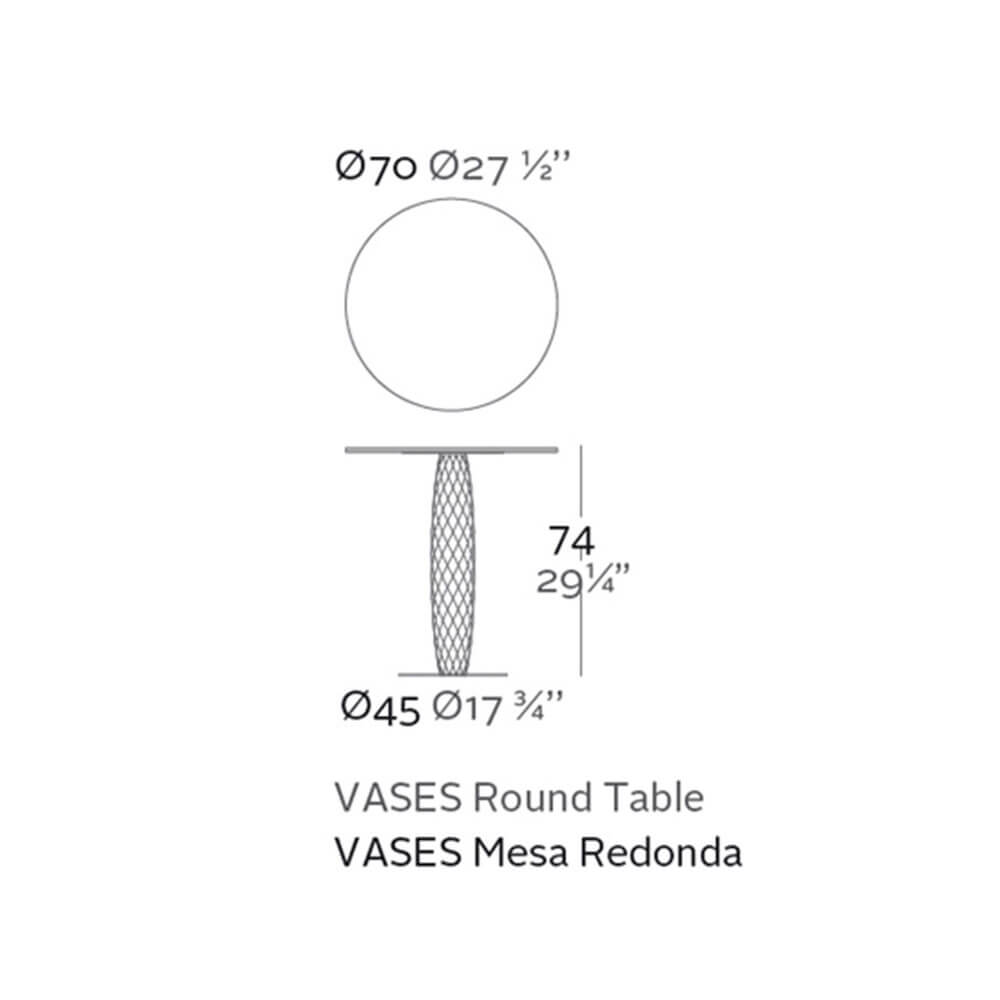 المصمم الإسباني JM Ferrero يصمم لمجموعة Vondom مجموعة VASES. ما يميز هذه المجموعة هو ملهمتها: الماس. هذا المادة الثمينة والدائمة تظهر شكلاً مميزًا وأنيقًا يجعل كل قطعة من هذه المجموعة نقطة الماس في مساحاتك الخارجية. Shop Decor يقترح الطاولة المستديرة MESA REDONDA التابعة لمجموعة VASES بلونين مختلفين: الأبيض والأسود. هذان اللونان سيلبيان احتياجات جميع العملاء؛ وإذا لم يكن هذا كافيًا، فإن Shop Decor يقدم إمكانية الاختيار بين قطرين، 60 أو 70 سم، حسب عدد الضيوف الذين ترغب في جمعهم حول هذه الطاولة الأنيقة والمميزة خلال المقبلات عند غروب الشمس. الزخرفة الرئيسية على شكل معين لمجموعة VASES تميز هذه المجموعة الجميلة من Vondom. VASES: المجموعة المتلألئة.