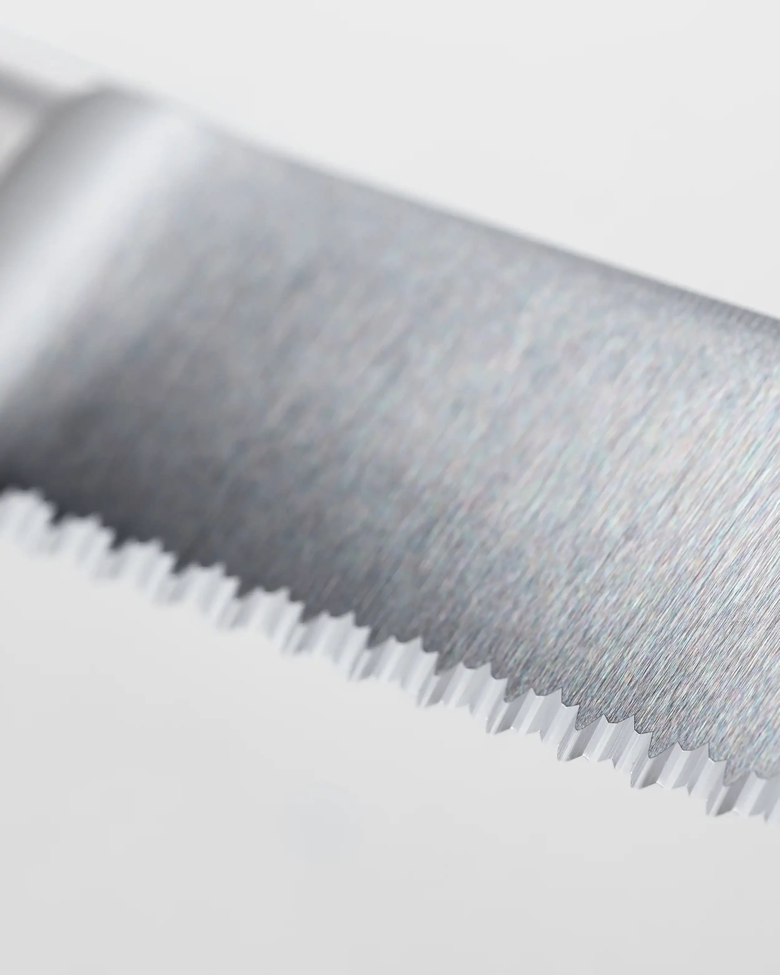 ما يميز سكين خبز wusthof crafter هو حافته المبتكرة مزدوجة المسنن. مع كل مسنن دقيق يعمل بتناغم، يوفر حدة تدوم طويلاً مع الحاجة إلى ضغط أقل للقطع المثالي. سواء كنت تتعامل مع خبز العجين المخمر الريفي أو الفوكاتشيا الهوائية، فإن هذه الشفرة Wüsthof تنزلق بسهولة وتحكم، لتصبح أفضل سكين خبز wusthof يمكن أن تقدمها.