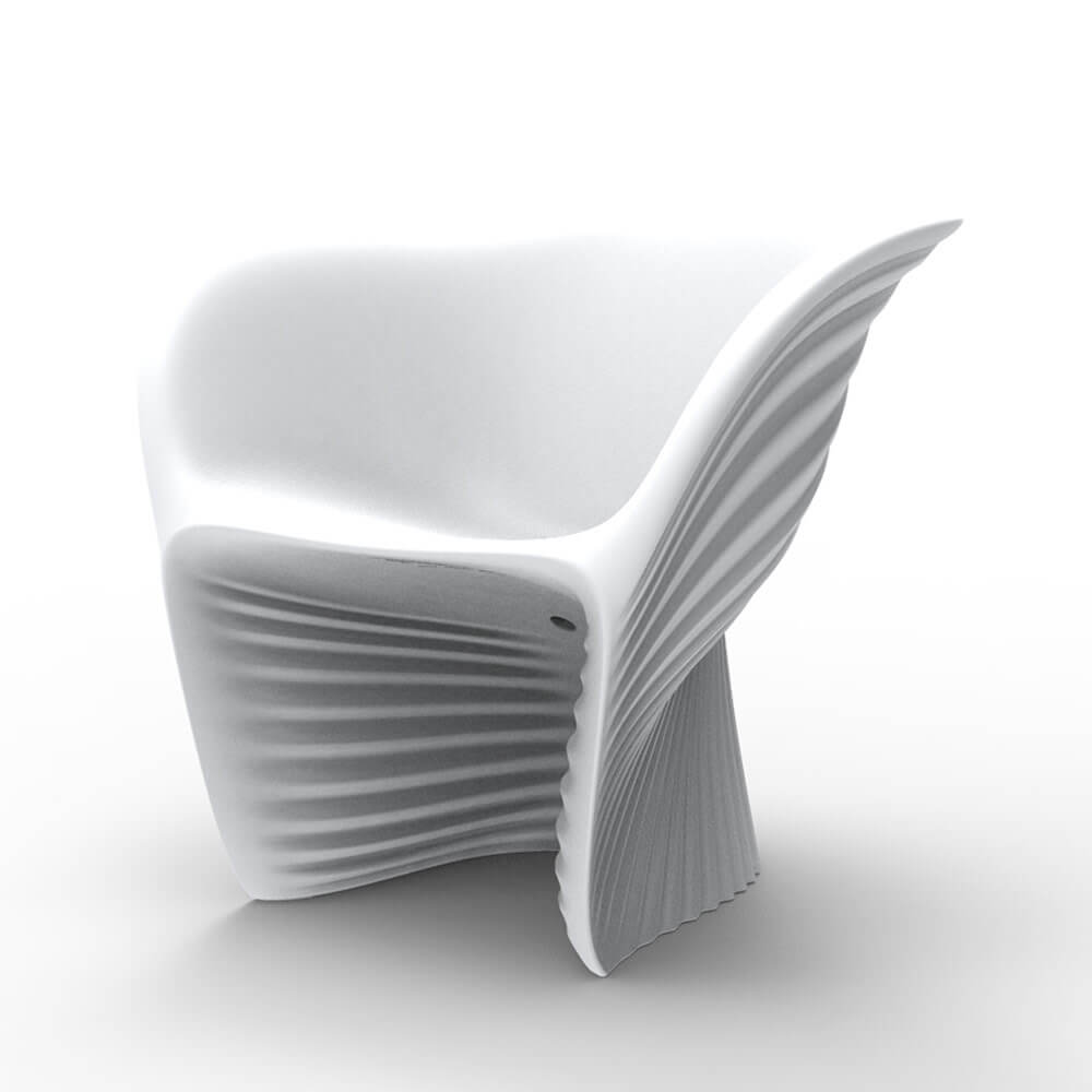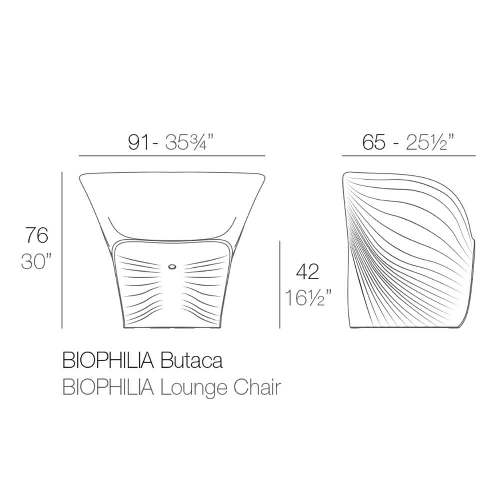 Vondom’s BIOPHILIA’s collection is the highest expression of advanced design and technology, Ross Lovegrove’s work joining the dreamlike and timeless shapes of Antoni Gaudì’s Sagrada Familia. Through the technique of rotational moulding, Ross Lovegrove proposes an original and innovative collection on which he experiments the processes of digital transfer of contemporary design. BIOPHILIA’s soft shapes and the perfect undulations on its surface recall the sea waves and make them give a dynamic and lively effect to all kind of ambiences, indoor or outdoor. BIOPHILIA’s collection is made up of a series of unique and original pieces of furniture: the Butaca armchair, the Sofa, the Silla, the original tapered chair; Mesa Sofa and Mesa outdoor tables are also available. All BIOPHILIA’s pieces are available in the original colours white, black, ecru, red and bronze: combine all of them, with their different shapes and colours, to obtain lively and original results. BIOPHILIA BUTACA is the original outdoor armchair, made of matte embossed polypropylene. Let yourself surrender by BIOPHILIA’s waves.
