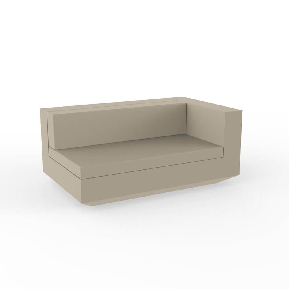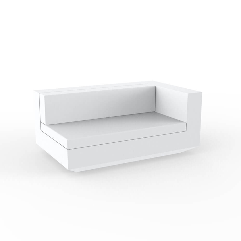 Vondom collaborates once again with Ramon Esteve to propose one of the most elegant and refined collections of the Spanish brand: VELA, a rich and variegated collection of furnishing elements, a clean and essential design to furnish with style and refinement. All VELA components are characterized by a neat, geometric style, which cuts out shapes in a well-defined and neat space, giving a well-balanced and light effect to the ambience. Combine all VELA components to create indoor and outdoor state-of-art spaces and ambiences: available in colours white, ecru and bronze, these soft shades make your spaces look chic and refined, fitting all kind of contexts. VELA SOFA IZQUIERDO XL module is the maxi element that can be combined with the other VELA SOFA modules, which can be joined to create a single big sofa with the desired shapes and length. The cushion is easy to wash and is covered in removable nautical leather, a material that guarantees the highest comfort and the maximum resistance to bad weather. Let yourself be carried to the ethereal world of VELA.