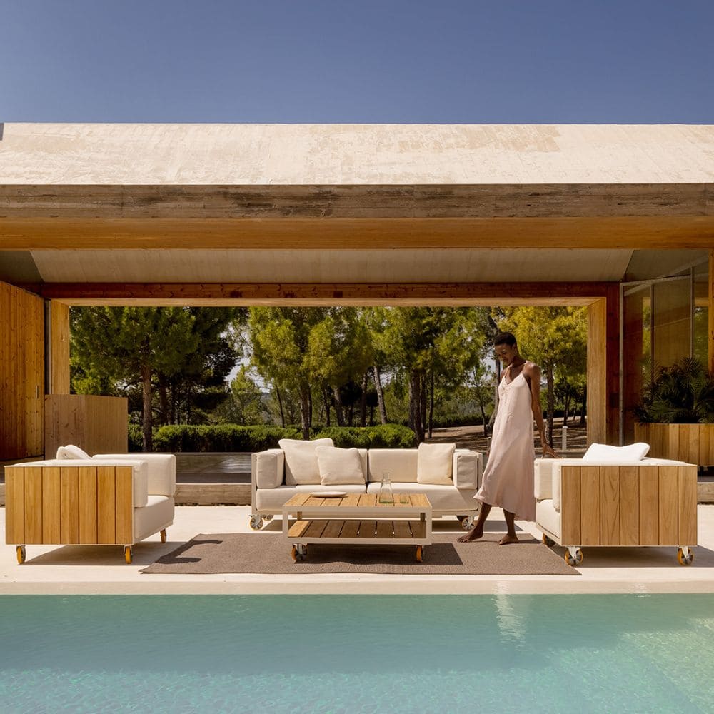 Transform your outdoor with Ramón Esteve's iconic designs, from Vela modular sofas to Faz chairs, blending elegance with functionality.