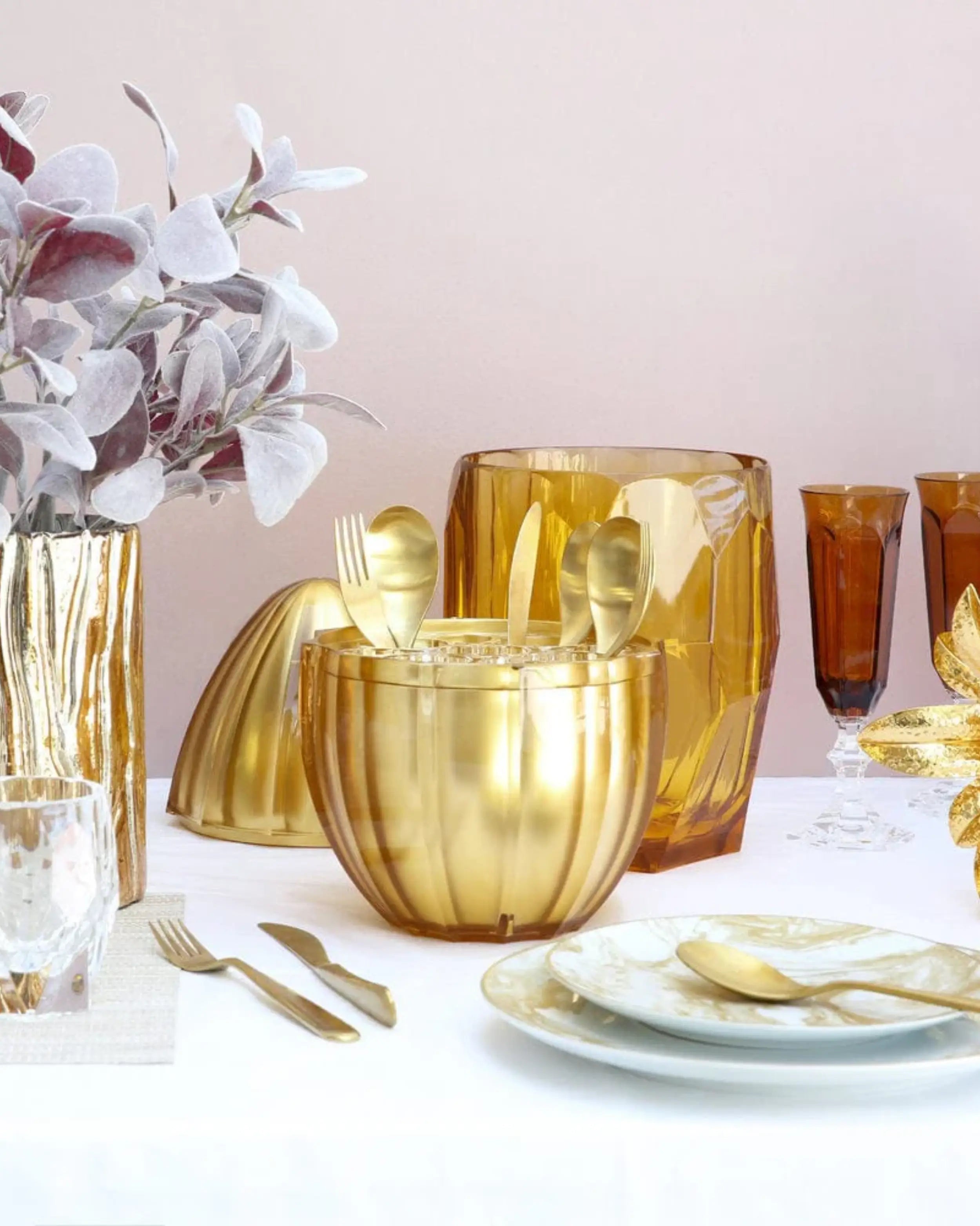The Mario Luca Giusti Mafalda Cutlery Holder reflects the pleasure of organizing space with intention, showing how to organize flatware elegantly while maintaining a sense of visual harmony. As a designer cutlery holder, it enriches the dining experience by offering a spacious yet refined compartment for utensils, bringing order and style to buffet setups or intimate dinners. For those seeking kitchen table organization tips, it demonstrates how structure and beauty can coexist effortlessly. Ideal for hosts wishing to buy designer cutlery holder online, it stands among the best cutlery storage ideas for contemporary homes, a true expression of modern tableware storage. With its sculptural profile and radiant finish, this luxury table organizer affirms the core philosophy of the brand: transforming practical objects into icons of design. The Mario Luca Giusti Mafalda Cutlery Holder brings refinement to every gesture, enriching the ritual of dining with style and clarity, perfectly complementing the brilliance of Mario Luca Giusti glasses and the functional elegance of Mario Luca Giusti ice buckets or bottle holders.
