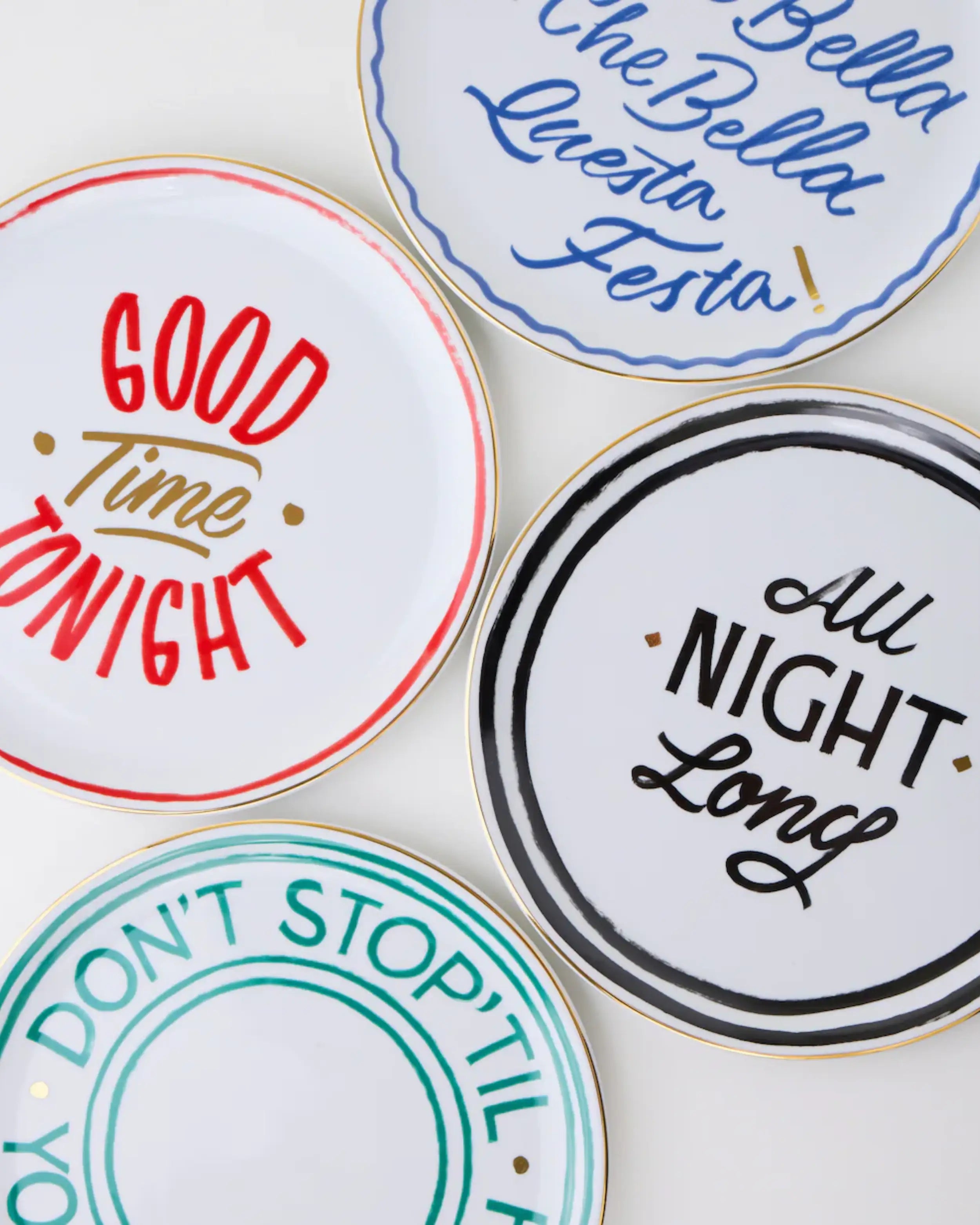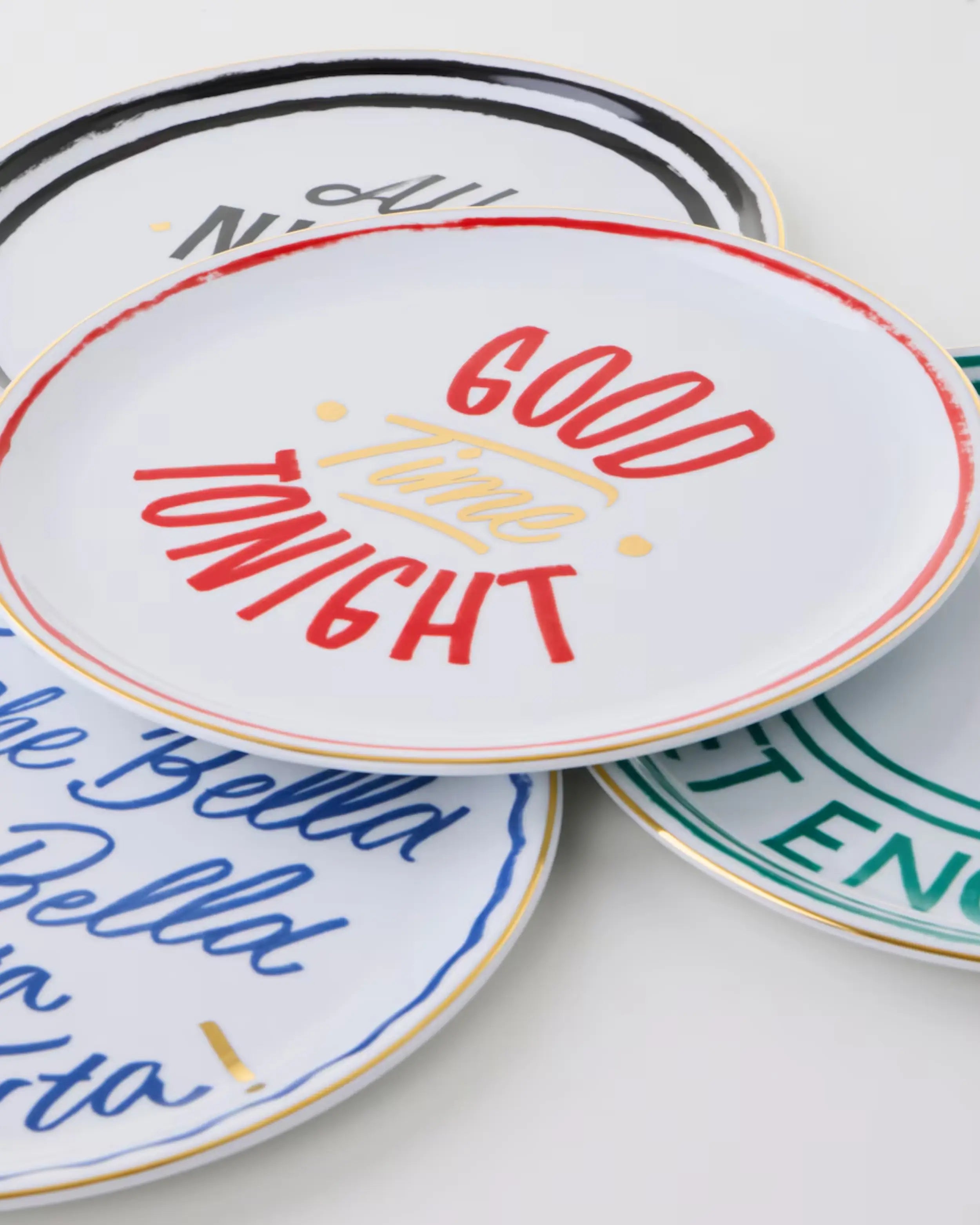 Part of the brand’s creative approach to tableware, The Club encourages individuality and experimentation. Its mix and match plate patterns concept allows each host to curate their own unique combination of designs and moods. Play with color, typography, and emotion to build a truly personal dining narrative. Whether chosen for a family meal or a festive evening, the “Good Time” plate fits effortlessly within modern interiors and artistic table settings. It’s not just a plate: it’s an invitation to how to style table settings with personality, a perfect balance of design and emotion for those who appreciate the best plates for modern tableware.