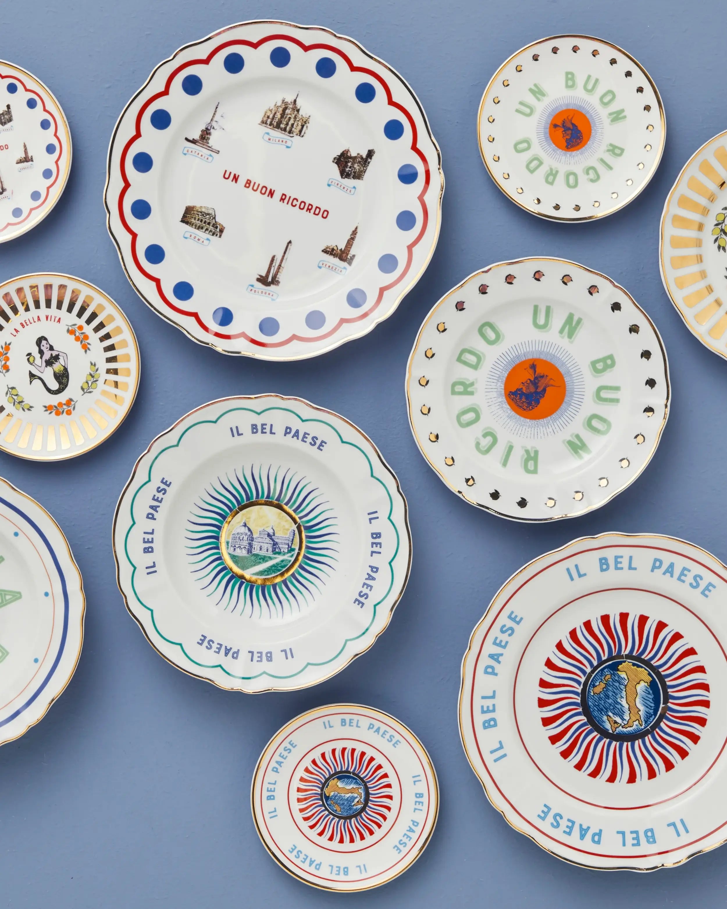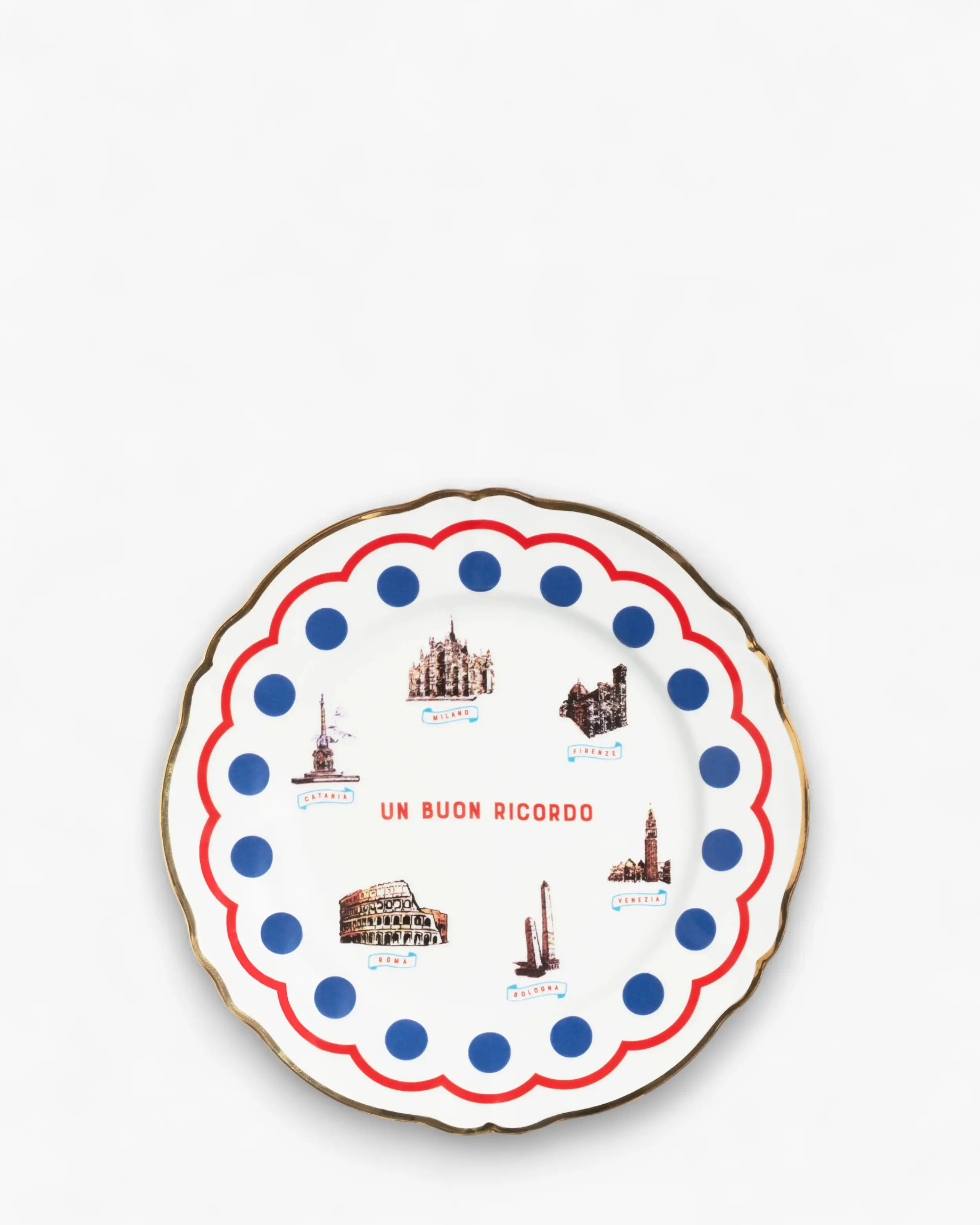 Each variation in the Un Buon Ricordo series tells its own visual story, with “Monumenti” and “Italia” representing the duality of identity and belonging. The delicate patterned design recalls timeless landmarks, captured through the poetic lens of Sam Baron’s artistry. This porcelain fine porcelain flat plate embodies the tradition of Italian storytelling on the table, merging history with design. Perfectly paired with other elegant pieces from the Sam Baron x Bitossi collaboration, it also complements the creative spirit of Bitossi tumblers & stem glasses and the expressive charm of Bitossi decor, creating continuity across the brand’s world of artistic dining.
