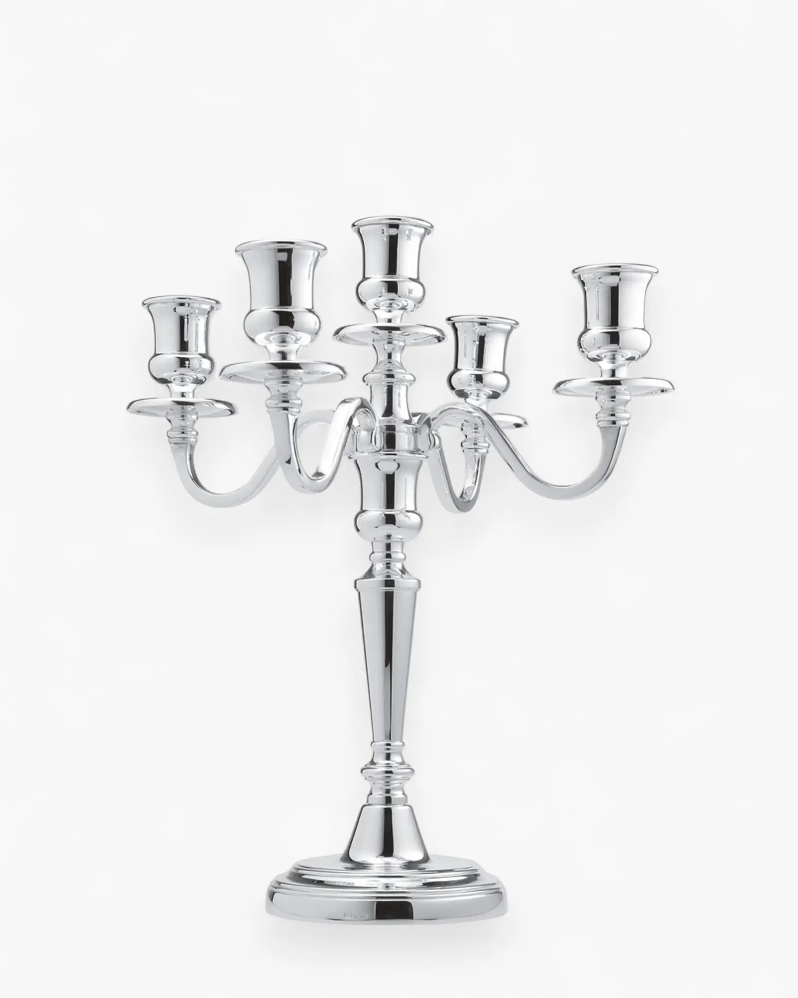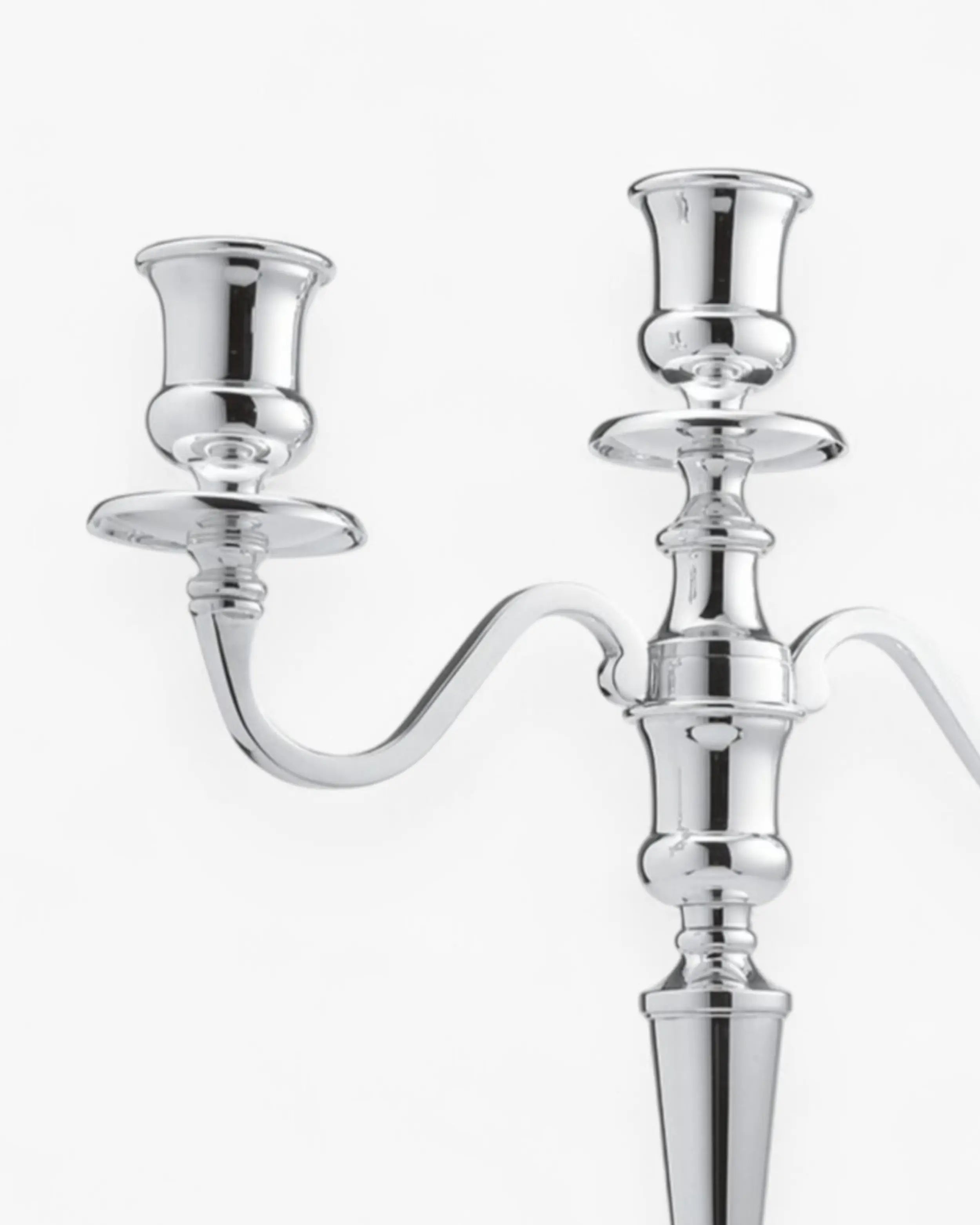 Its high-polish silver finish beautifully reflects candlelight and ambient tones, creating dynamic interplay between flame, material, and décor. This effect enhances the mood in intimate dining settings or large event spaces alike.
