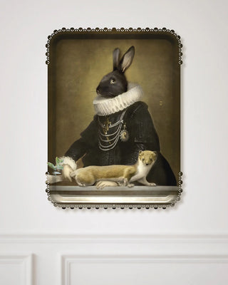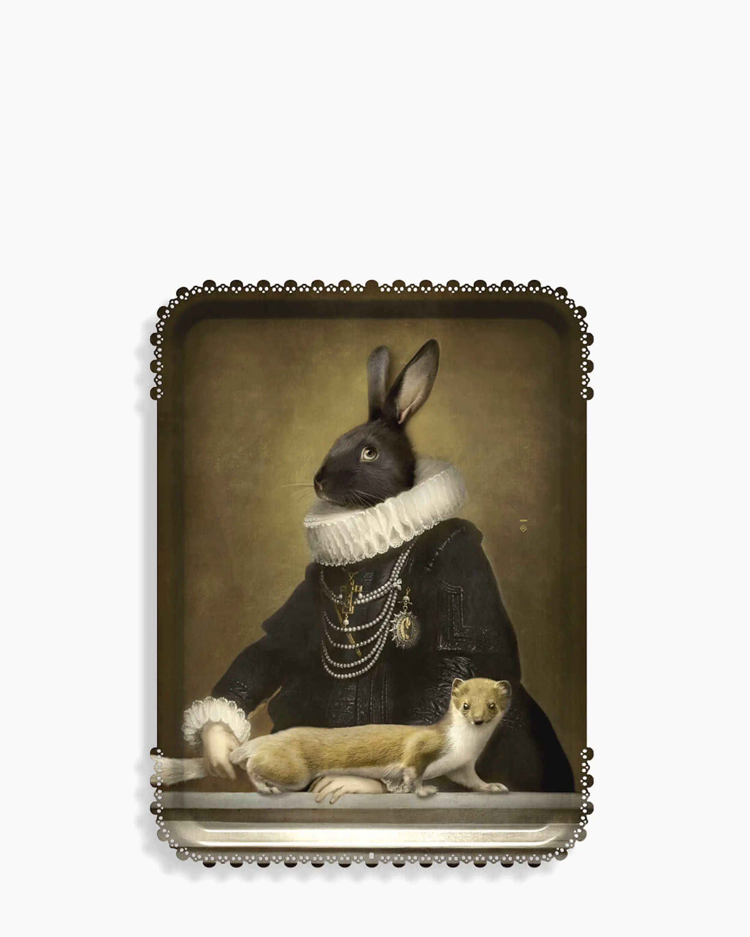 Embrace the charm of the past with a modern twist through the Ibride Galerie de Portraits Zhao/Tassi tray. Designed by the renowned artist Rachel Convers, this exquisite piece from the Cutting Boards and Trays collection seamlessly blends practicality and art. With dimensions of 46x61 cm (18x24 in), it serves both as a serving tray and a captivating wall decor item, bringing character and sophistication to any space.