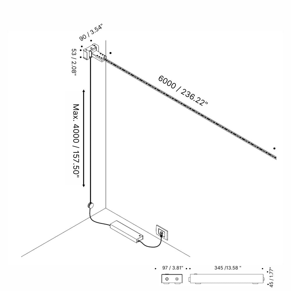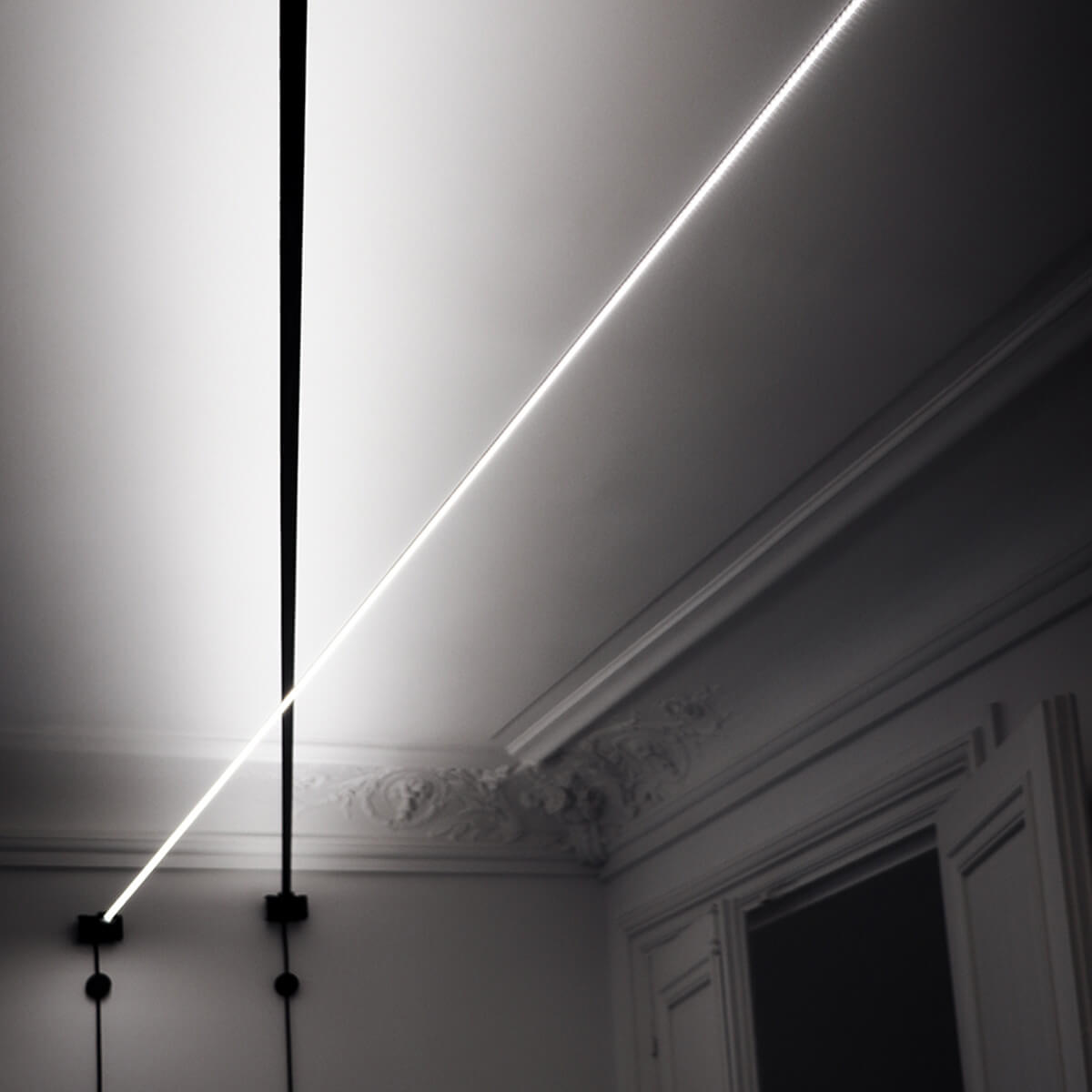 Flash LED is the wall lamp designed by Davide Groppi with a unique and original design. Flash, available in different lenghts, consists of a stretched steel wire that crosses the space and produces a diffused light towards the underlying area. Flash is an object with a simple yet strong aesthetic that immediately catches the eye.