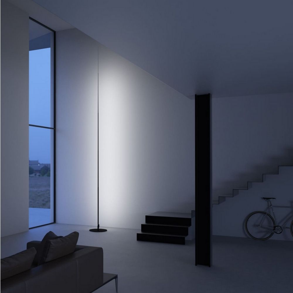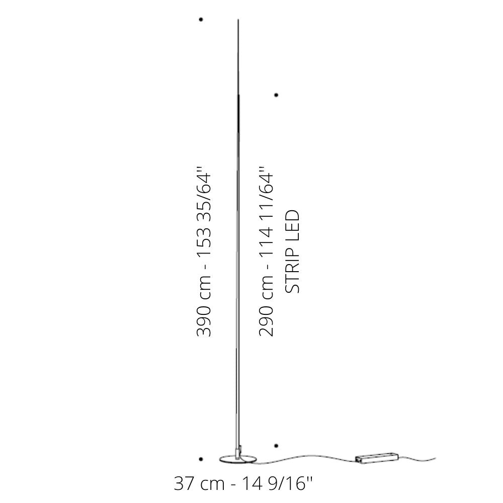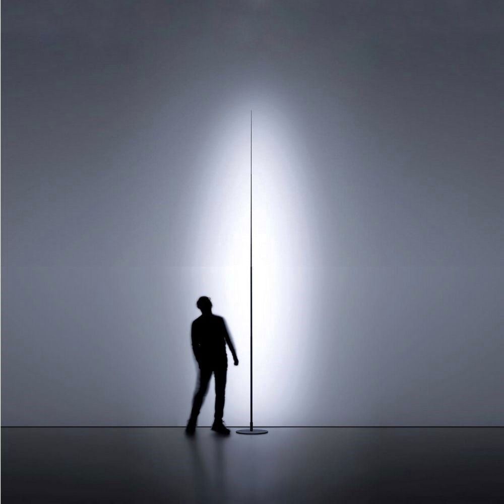 The Origine 390 floor lamp with integrated LED, designed by Davide Groppi for the homonymous lighting brand, is here proposed with a height of 390 cm. The Origine name comes from the Latin "origo", and symbolizes the beginning and the birth: the lamp, in fact, represents a sprout that comes from the earth and rises towards the sky, with the stem becoming thinner and thinner. Origine 390 is specifically designed for indoor spaces.
