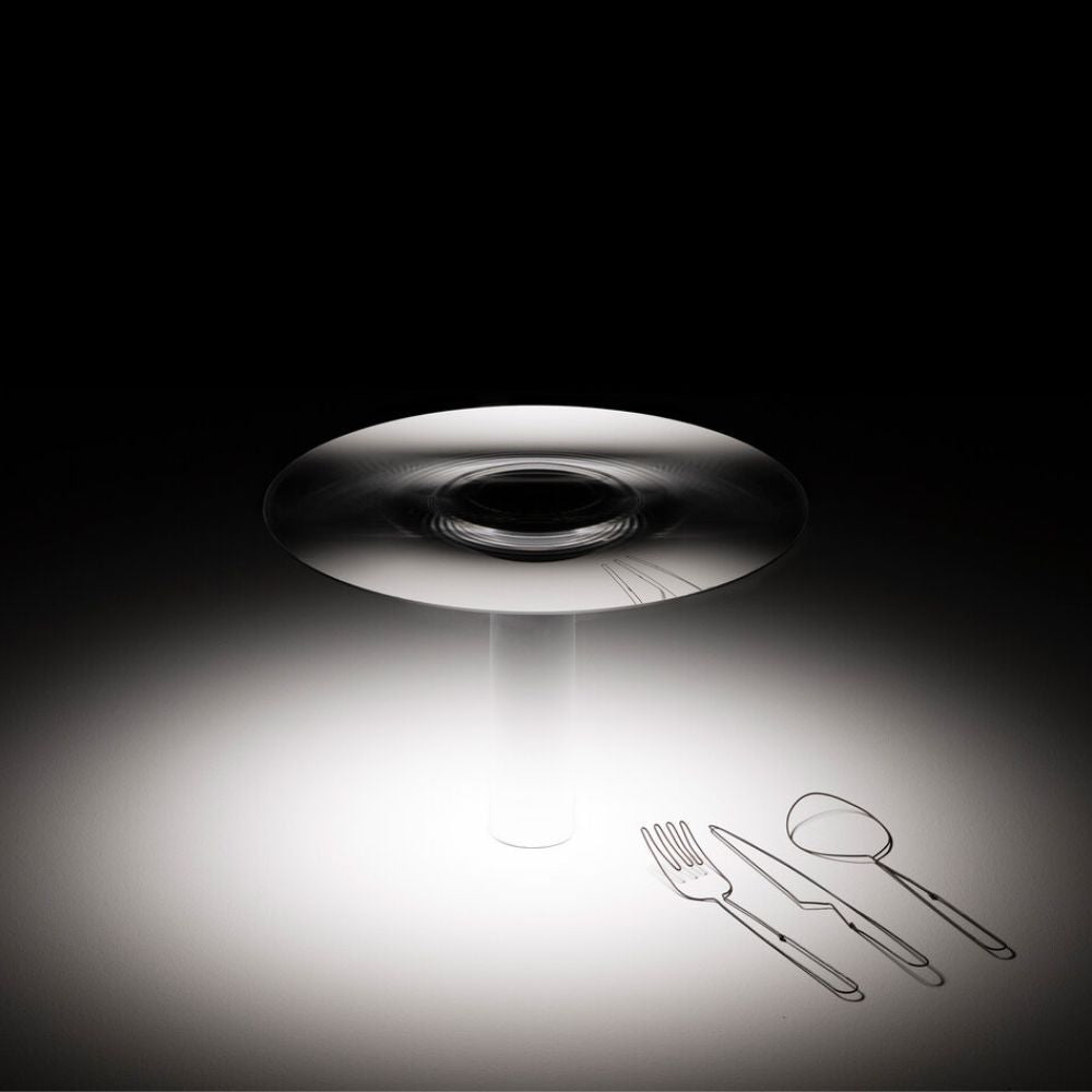 Explore Michele Groppi's iconic Vis à Vis Table Lamp, a luxury cordless table lamp with a transparent design perfect for elegant settings.