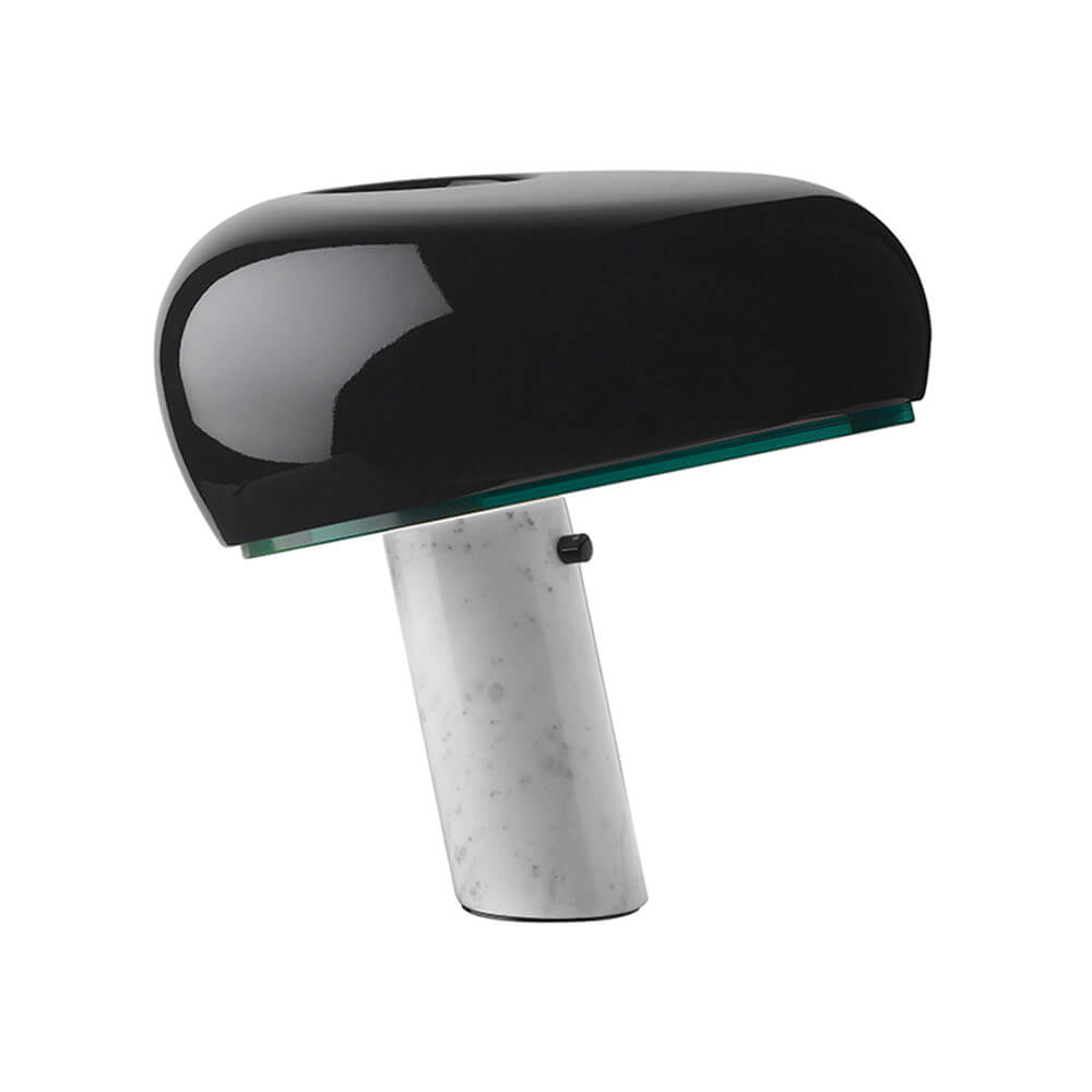 Designed by Achille and Pier Giacomo Castiglioni in 1967, SNOOPY is the table lamp produced by Flos. A cylinder made of Carrara white marble supports the element made of black polished metal, which is the source of the light. The light has a variable intensity thanks to the dimmer included. If looked at in profile, this lamp reminds the profile of the dog of the series Peanuts, created by C.M. Schulz. Appeared in 1950, this character has remained in the international history of comics and culture. The table lamp SNOOPY is characterized by a simple and clear line, which is typical of these two designers, which created in the '60es a series of lamps with an always modern and current design. Even if elegant and discrete, SNOOPY will be noticed in every space.