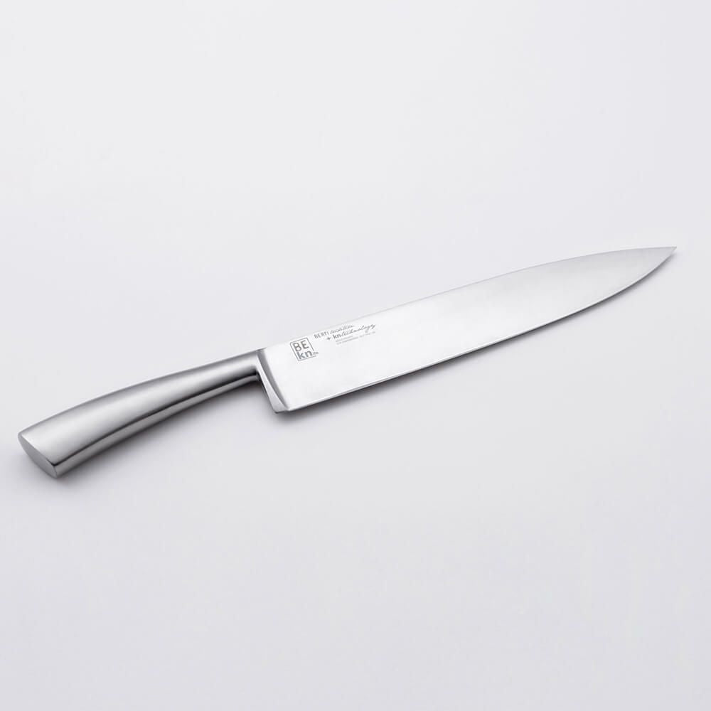 The KnIndustrie Be-Knife Chef Knife is not just a tool—it’s an extension of the cook’s hand. Designed by Andrea Berti, this chef’s knife combines refined Italian craftsmanship with functional innovation, making it a standout piece in any Knives & Co collection. Created entirely in steel, it embodies durability, sharpness, and contemporary elegance.