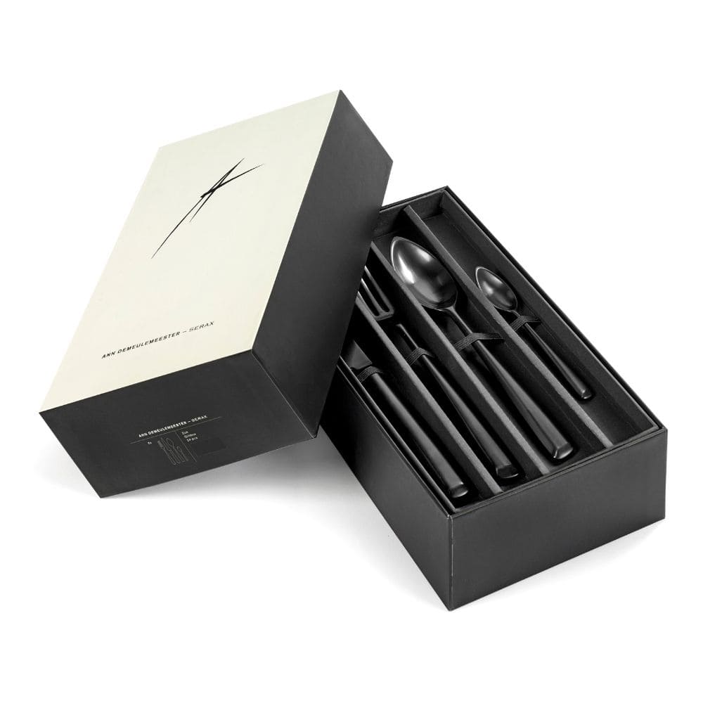 In everyday service, the Serax Zoë Set 24 Cutlery Black Steel reduces visual distraction and promotes efficiency, details that matter equally to chefs, hoteliers, and domestic hosts. Dishwasher safety and alimentary suitability guarantee longevity, while tactile comfort is preserved across repeated use. This durability, combined with elegance, exemplifies why luxury cutlery Serax continues to be associated with reliability and refinement. As part of the Ann Demeulemeester for Serax cutlery line, the set reinforces the principle that form and function are not opposites but partners—delivering a quiet authority that enriches dining as a daily act of design.YOU MAY ALSO LIKE...