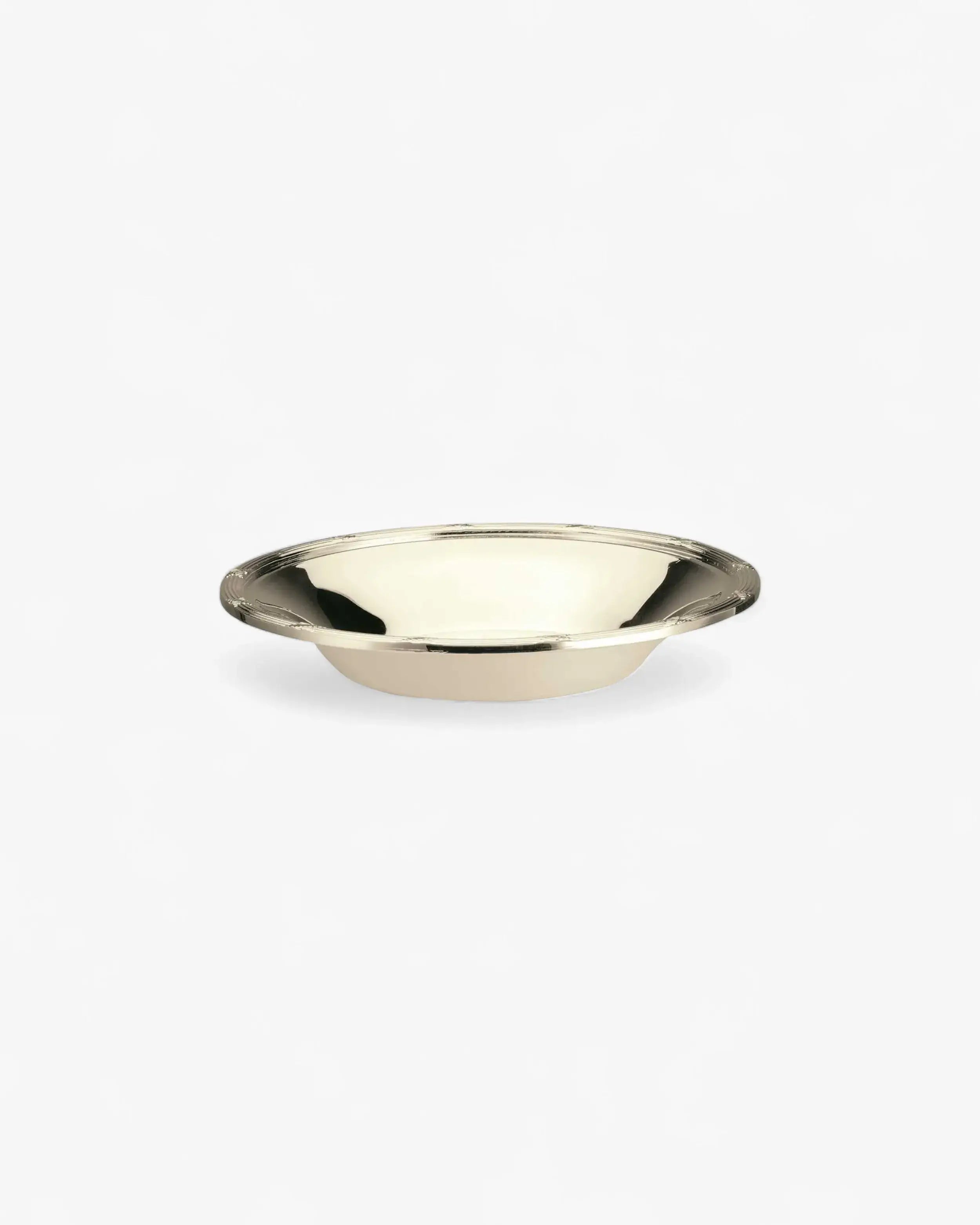 Crafted from premium Alpacca silver and finished with a radiant silver-plated nickel coating, this rubans centerpiece bowl boasts unmatched elegance and durability. The high-quality materials ensure long-lasting brilliance, resisting tarnish while maintaining its luxurious sheen. Designed for alimentary use, it is as functional as it is beautiful, offering a refined way to present fresh fruit or other delicacies.