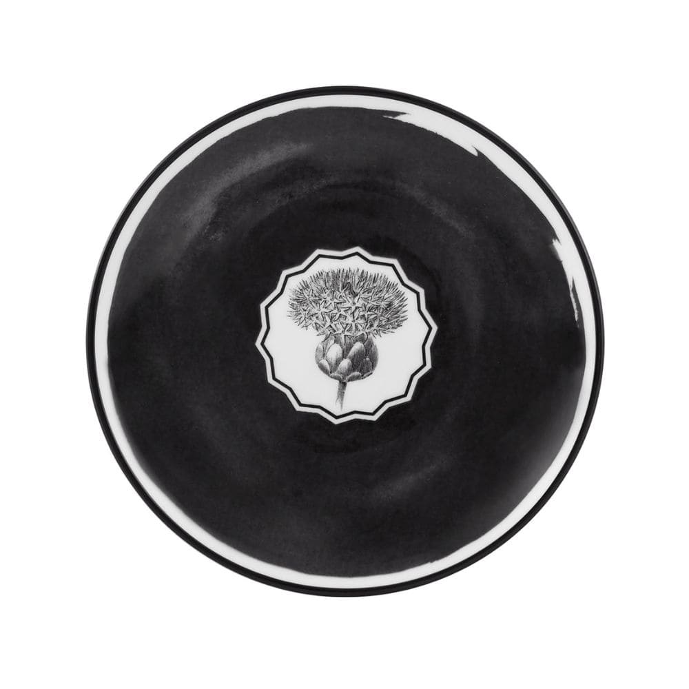 Herbariae bread and butter plate black, designed by Christian Lacroix for Vista Alegre. The Herbariae bread and butter plate black, finely decorated with a flower and a black border that give a touch of unique elegance thanks to the contrast of colors, is the ideal element to make your table unique. The Herbariae collection takes inspiration from five flowers (the poppy, the narcissus, the lotus, the dahlia and the thistle) and makes them protagonists of the entire line representing them in the style of ancient herbariums and combining them with soft colors, thus evoking a watercolor effect. Discover the entire Herbariae collection and make every occasion unique.