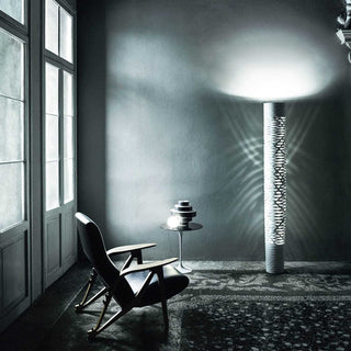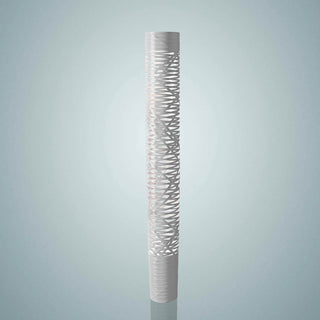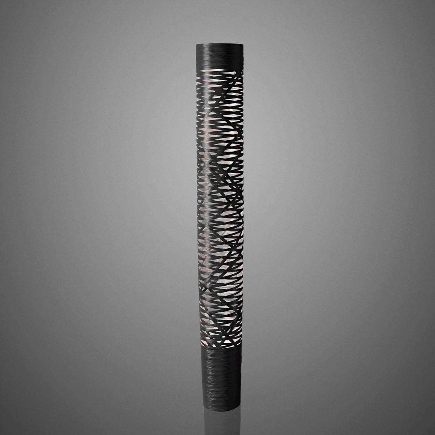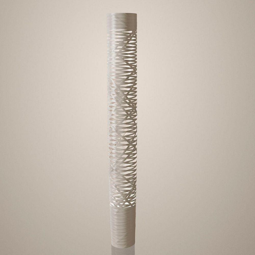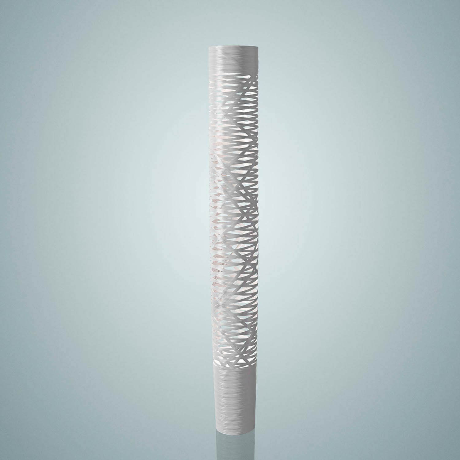 Tress LED is a large floor lamp made by artist Marc Sadler for Foscarini. Tress is characterized by a braid of fiberglass and resin. The lamp occupies minimal space, and creates a great scenic effect. Tress emitted a warm light towards the ceiling and projects a second light towards the inside of the lamp, creating an original play of light on the walls.