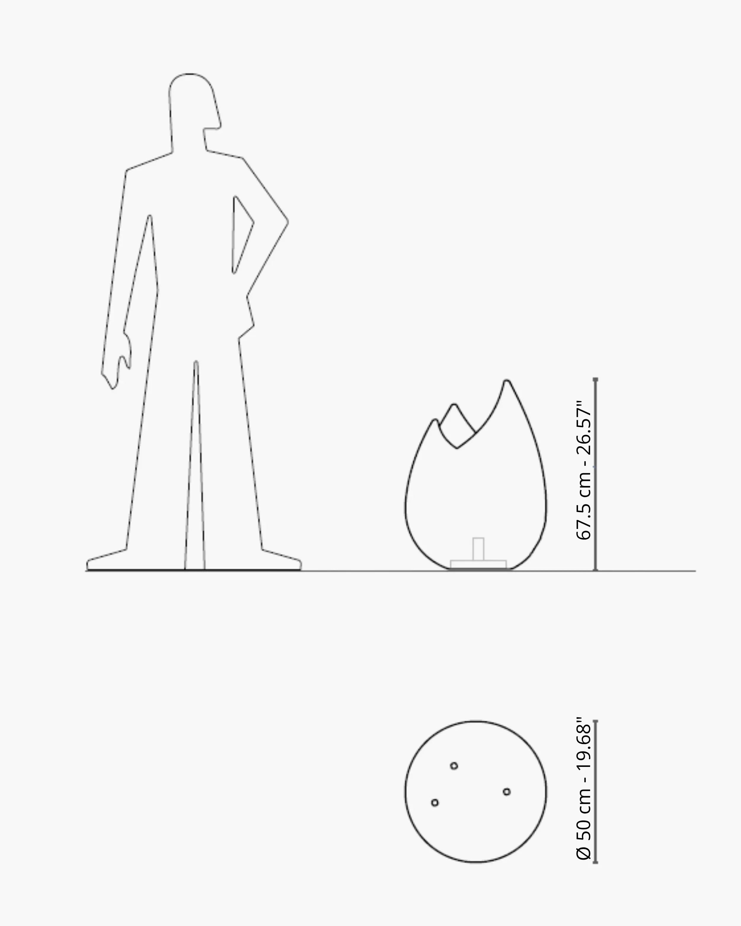 Crafted in high-performance polyethylene, the Flame lamp withstands outdoor use in all conditions. Resistant to UV rays, impacts, and temperatures ranging from –35°C to +80°C, it ensures durability while maintaining its sculptural elegance. Entirely recyclable and solution-dyed, it holds its vibrant appearance season after season. Cleaning is straightforward: water and mild detergent suffice, while lacquered finishes benefit from more delicate care.