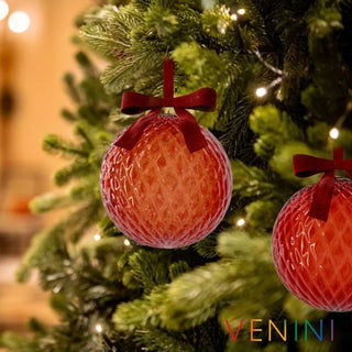 Venini Santa 199.05 small decorative ball red with gold leaf diam. 10 cm.