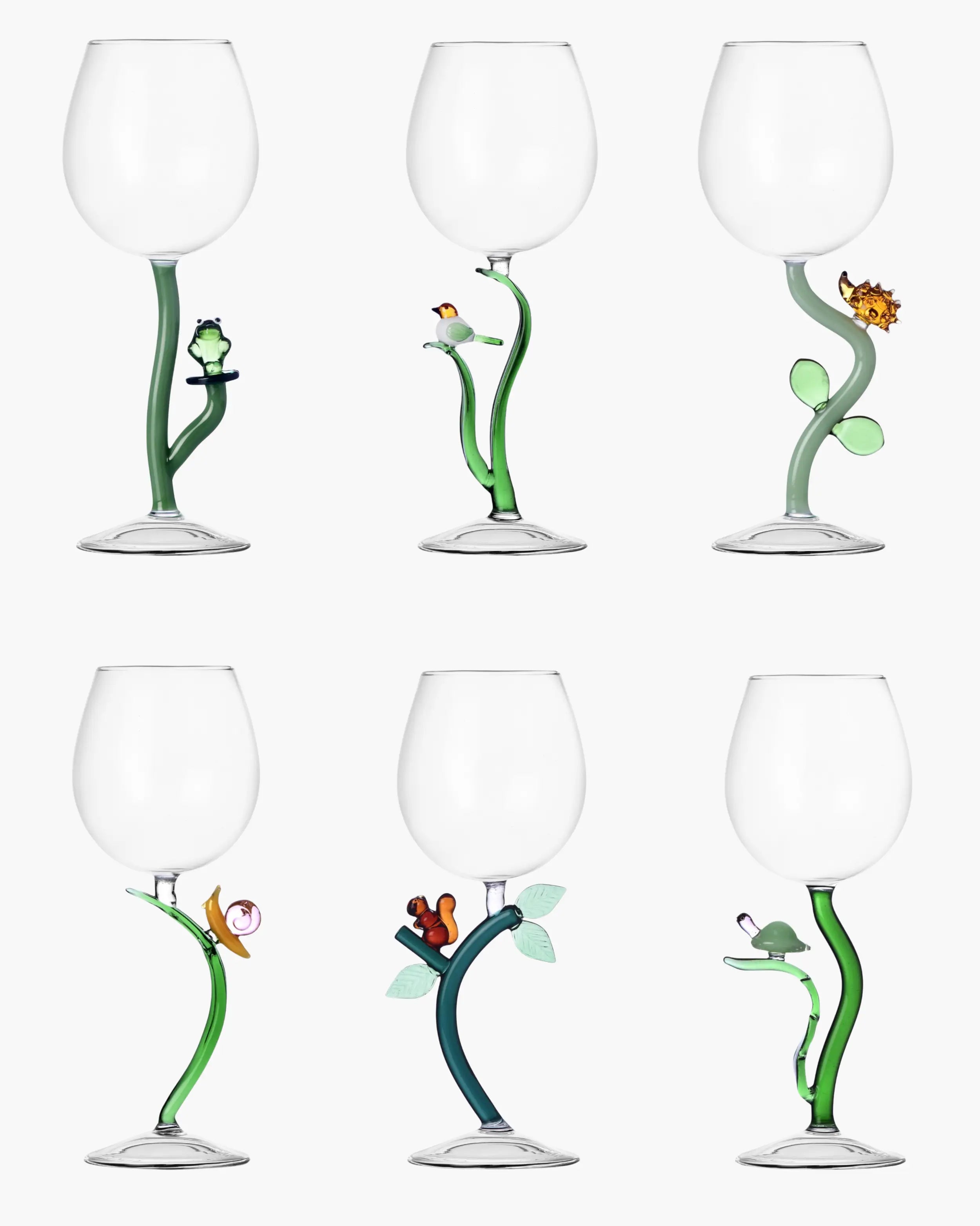 The Ichendorf Animal Farm Set of 6 Goblets is not just a set of glasses: it is a miniature bestiary in glass. Each goblet features a different animal motif, transforming the act of drinking wine into a playful discovery. Designed by Alessandra Baldereschi, the collection celebrates her ability to blend everyday functionality with storytelling charm. Let every guest choose a different animal and suddenly a dinner turns into a stage where frogs, snails, and birds share the table alongside family and friends. This set fits naturally with other tableware or tea and coffee sets to create a cohesive, whimsical tabletop.