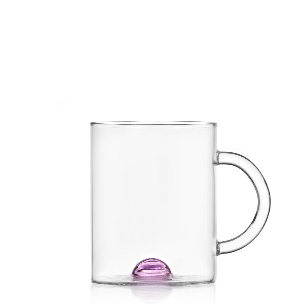 The Ichendorf Luna mug with coloured dot turns a daily ritual into a small act of art. From the cups and mugs collection, within its transparent form, a single luminous dot; available in pink, blue, or amber hovers like a drop of color suspended in air. The contrast between pure glass and vibrant pigment gives the Luna mug a cheerful, poetic identity. Designed by Ichendorf Design, it embodies the brand’s unmistakable balance between elegance, craftsmanship, and joyful simplicity.