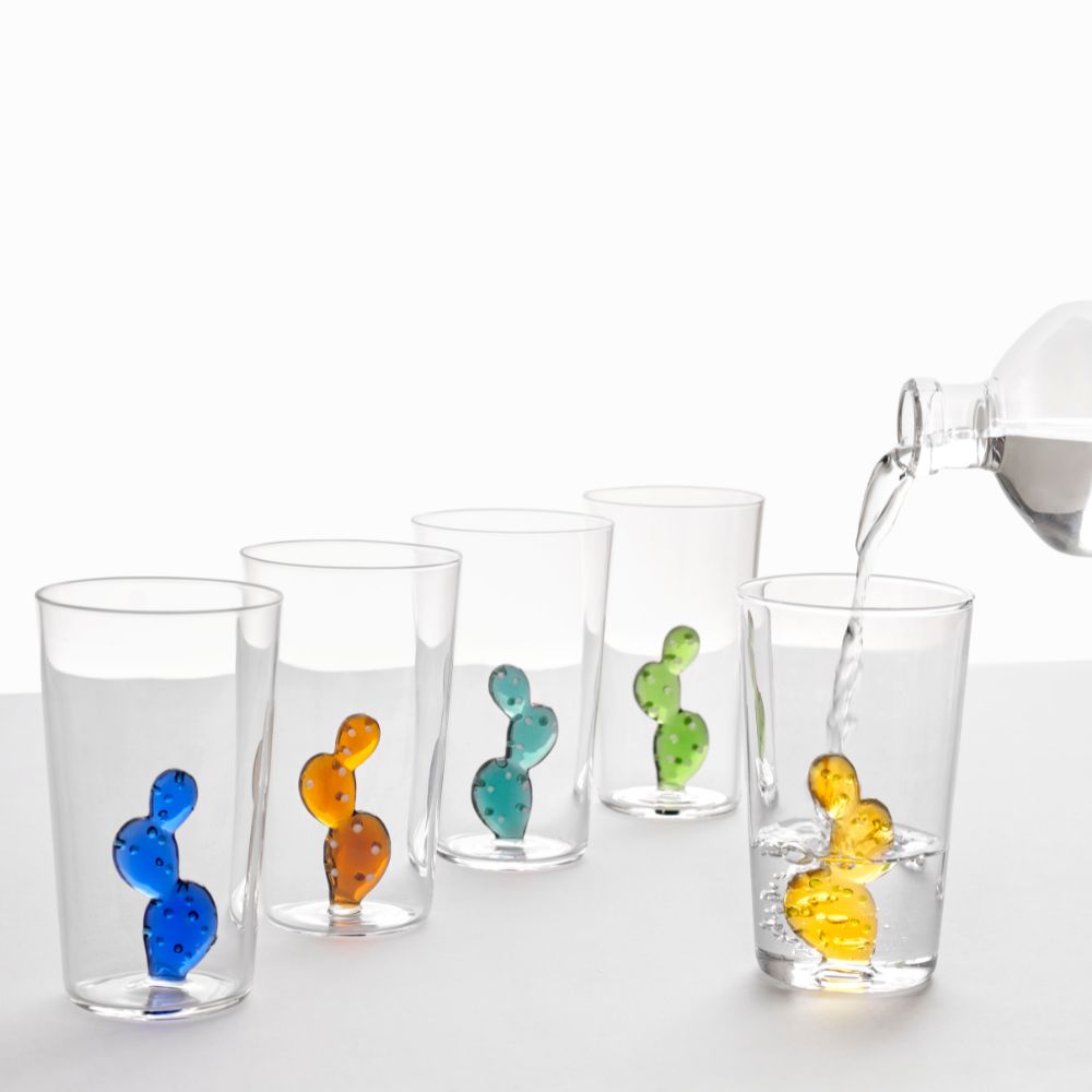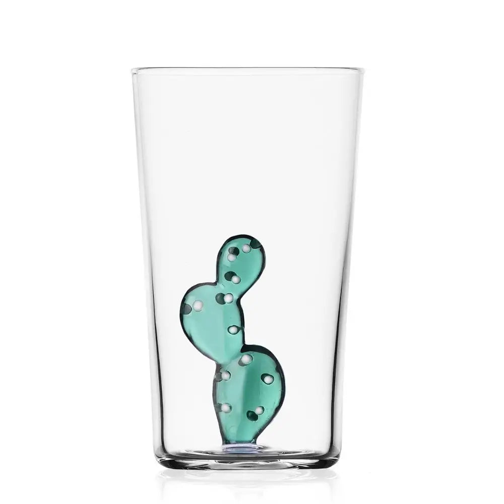 The Ichendorf Desert Plant longdrink cactus by Alessandra Baldereschi for Ichendorf captures the vibrant spirit of nature within the transparency of borosilicate glass. Each glass is handmade and lampworked by artisans, transforming a simple object into an artistic celebration of the desert landscape. The delicate cactus detail inside the glass seems to bloom beneath your drink, making every serving an experience that unites design, craftsmanship, and imagination. A poetic object that evokes sun-drenched dunes and creative Italian artistry.