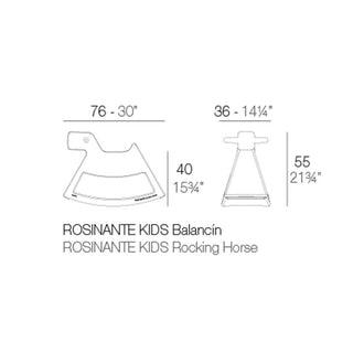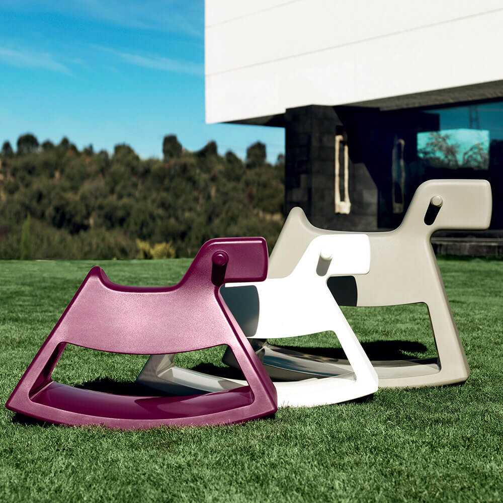 An homage to Spain and to Vondom’s world by Eero Aarnio: ROSINANTE is the coloured and funny rocking horse, a perfect mix of design and fun. ROSINANTE is the name of Don Quixote’s horse, the main protagonist of the classic “The Ingenious Gentleman Don Quixote of La Mancha”, main novel of Spanish literature. By reworking the shape of the classic rocking horse, Eero Arnio proposes a modern and original rocking chair, a little work of art that will enrich your outdoors. ROSINANTE is a funny game for both adults and kids, available in two seizes to please cowboys of all ages: it is here proposed in the KIDS version. Thanks to its lithe base, you can either pivot on it or rock back and forth. Available in white, black, ecru, bronze and red, ROSINANTE is made of matte embossed polypropylene, which is resistant to bad weather and it is easy to clean. Gallop towards design and fun with ROSINANTE.