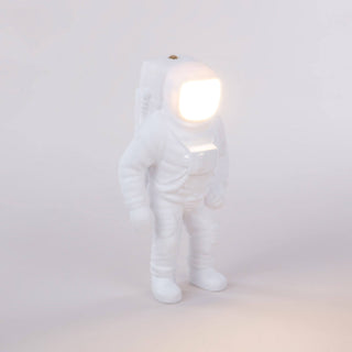 Each Diesel with Seletti portable lamp from the Starman series illuminates everyday life with a visionary blend of technology and storytelling. Made of thermoplastic resin, it balances strength and lightness while its integrated LED system delivers enduring brilliance. As part of the Diesel Living with Seletti Objects line, it pays tribute to human curiosity and the symbolic power of light. This thermoplastic resin cordless lamp stands between art and function, transforming any space into a scene of imagination. Perfectly pairing with Tableware accessories, especially those from the Cosmic Dinner Collection, it completes a modern and original table setting that reflects brand’s unique fusion of design, narrative, and attitude.Care and endurance