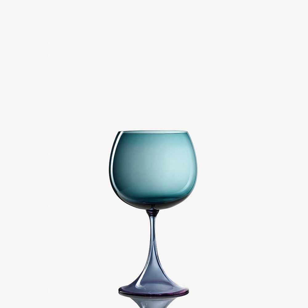 The Mille e una Notte collection, designed by Stefano Marcato for Nason Moretti, leading Italian brand in the production of glasses, vases and design objects handmade in Murano glass, is inspired by the dreamlike atmospheres of the novel Mille e una Notte. The montrachet chalice Mille e una Notte air force blue and peach is ideal for tasting and enhancing Montrachet wines. The handmade glasses become an object with a unique and inimitable design, the perfect element to amaze your guests.
