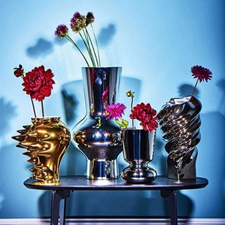 The particular shape of these vases give them a straordinary design. Available in different colours (white, black, gold or silver) and different heights. Decorative use.