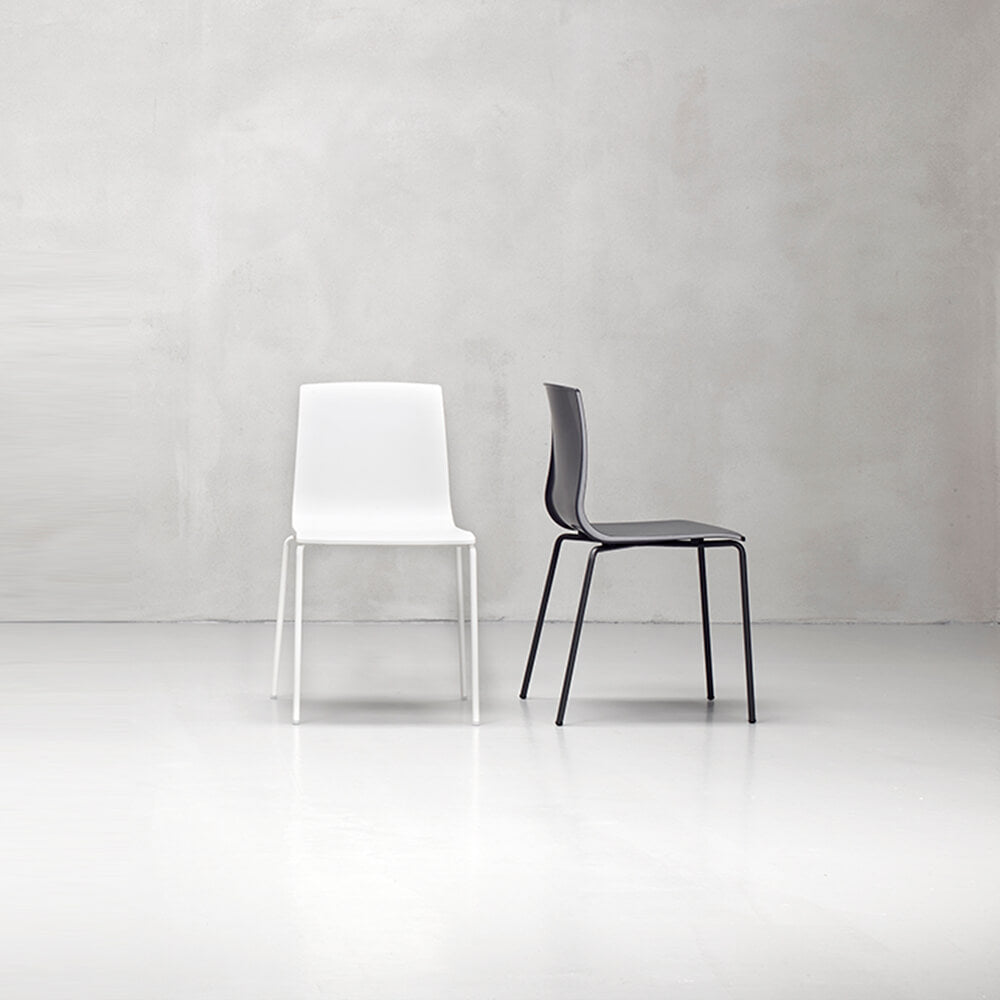 ALICE CHAIR by Scab is the perfect combination of refined taste and simplicity of shapes and lines. The 16 mm chromed tubular steel frame supports a durable technopolymer shell, creating a light form that makes the strength of the essential. Designed for indoor use only, ALICE CHAIR is perfect for both domestic design furnishings and more sophisticated contract settings. Its simple shape makes it easily stackable, making these sessions a practical solution even for those places with little space available. Available with a chair height of 82 cm and a seat height of 46 cm, it is available in many different colors.