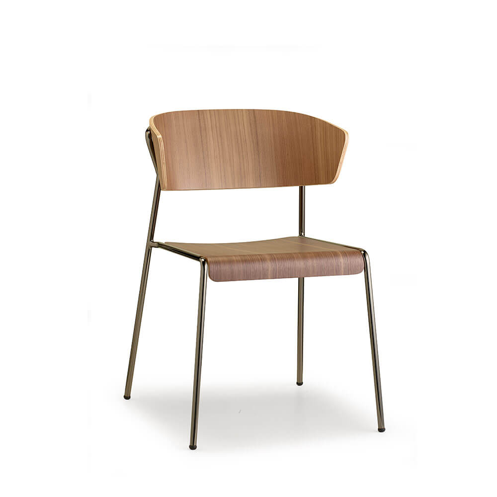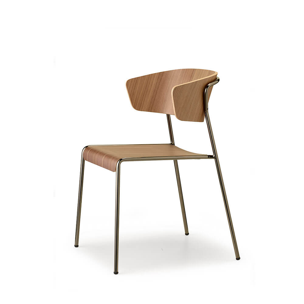 Armchair by Scab Design. For over 50 years, Scab is the 100% Made in Italy brand that becomes a leader in the furniture industry. Chairs, armchairs, stools and tables made with attention to detail and designed with prestigious raw materials. Since 1957, the Italian brand has been dealing with interior and exterior design, decorating offices, restaurant, and even domestic environments with style and elegance. Everything with the tipycal elegance that distinguishes Scab Design. Steel Armchair designed by Marcello Ziliani. Seat and back: multilayer beech wood. 4-leg frame in 16 mm. diam. tubular steel tube. Stackable. For indoor use. Scab Design Lisa Wood armchair glossy black nikel legs and american walnut wood seat
