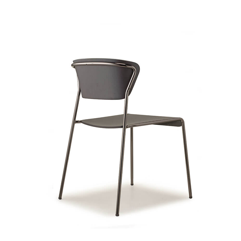 Chair by Scab Design. For over 50 years, Scab is the 100% Made in Italy brand that becomes a leader in the furniture industry. Chairs, armchairs, stools and tables made with attention to detail and designed with prestigious raw materials. Since 1957, the Italian brand has been dealing with interior and exterior design, decorating offices, restaurant, and even domestic environments with style and elegance. Everything with the tipycal elegance that distinguishes Scab Design. Steel Chair designed by Marcello Ziliani. Seat and back: multilayer beech wood. 4-leg frame in 16 mm. diam. tubular steel tube. Stackable. For indoor use. Scab Design Lisa Wood chair glossy black nikel legs and black oak seat.