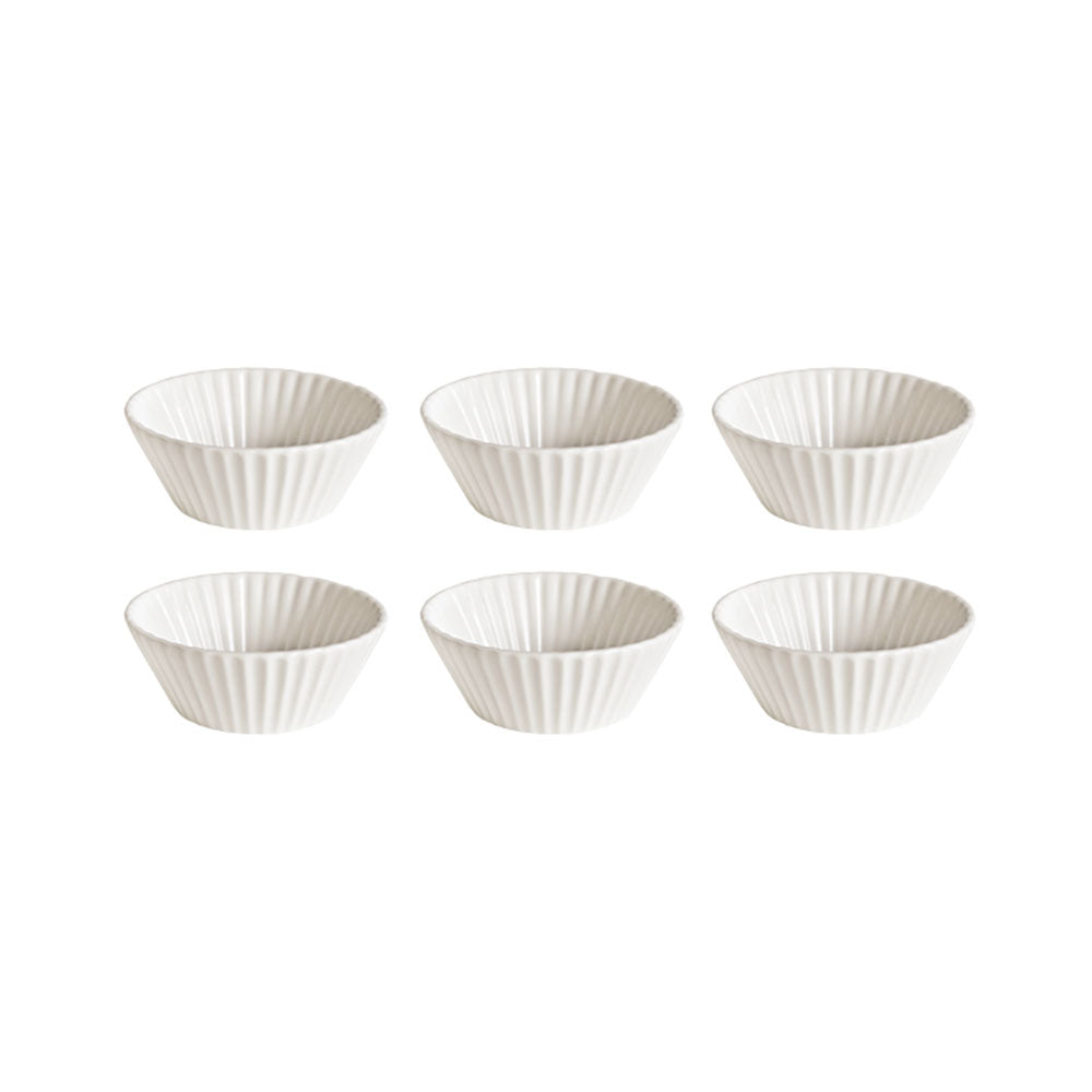 This elegant set of six bowls reimagines the simple table accessory as a refined design object. The delicate pleating adds a tactile rhythm that invites the hand as much as the eye. Minimal yet expressive, these bowls are designed to harmonize with any table setting, from contemporary arrangements to classic compositions. Perfect for serving soups, cereals, desserts, or side dishes, they bring a sense of order and lightness to the table, turning functionality into artful simplicity.