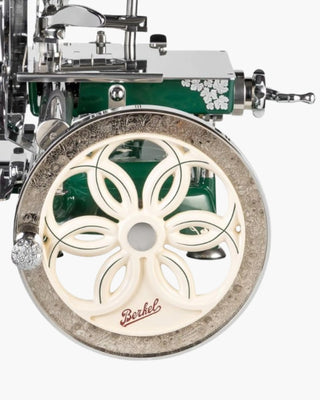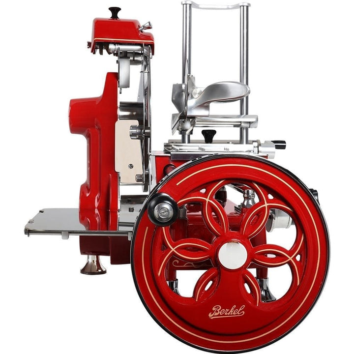 Berkel is synonymous with precision and design. Each slicer is crafted to ensure the finest cuts, whether you're slicing meats, cheese, or vegetables. The stunning professional slicer machine offers a combination of meticulous engineering and aesthetic beauty, making it the ideal choice for chefs and home cooks alike. The Berkel Volano Tribute flower flywheel slicer brings an air of nostalgia with its classic design, featuring a beautifully crafted flywheel and precise manual operation, perfect for ham and cured meats. This machine not only elevates your kitchen but also offers a performance that’s trusted by culinary experts worldwide.