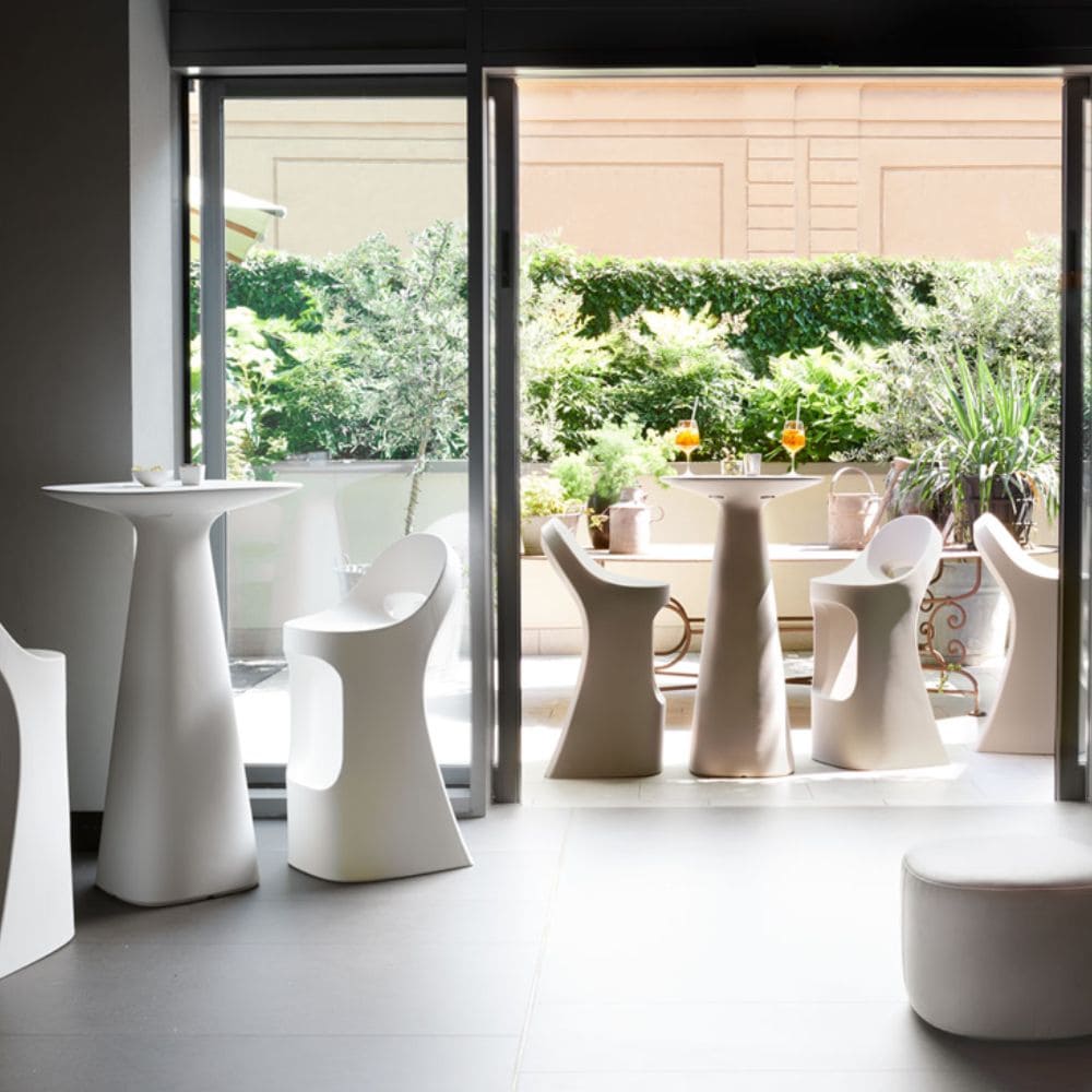 Amélie Up is the new high table designed by Italo Pertichini for Slide. Characterized by a conical line, typical of the whole Amélie collection, and here the main element of the table, makes Up a high table ideal for decorating both indoor and outdoor environments giving a touch of liveliness and colour. Discover Amélie Up in all its colours and choose your favourite!