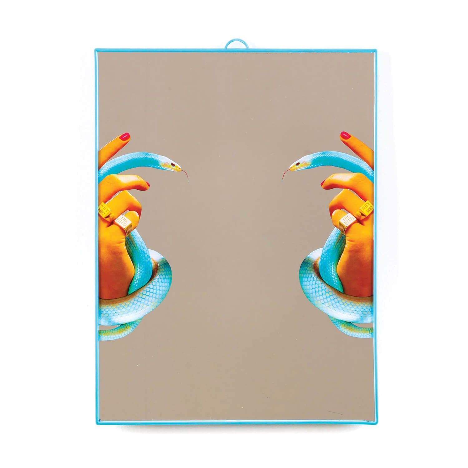 The quirky glass mirror adapts to various spaces and moods: as a vanity mirror in a bedroom, an accent piece in a hallway, or a focal point in an eclectic living area. Its modest size makes it perfect for layering with other décor, while its vivid imagery ensures it stands out. This art print wall decor merges surreal aesthetics with contemporary practicality, giving every wall a touch of pop sophistication. It’s a statement of individuality and humor, wrapped in the precision of Italian craftsmanship.