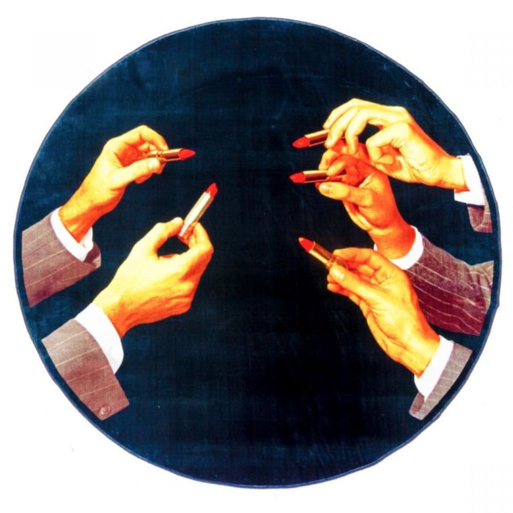 Placed beneath a table, at the center of a lounge, or even under a sculptural armchair, this designer carpet Toiletpaper alters the perception of the room around it. The contrast between the black background and the vibrant lipsticks creates visual depth and drama, drawing the eye toward the center of the design. Its round format introduces a sense of movement and harmony, an organic counterpoint to angular furniture. More than a modern living room rug, it’s a conversation piece that anchors contemporary décor with bold personality.