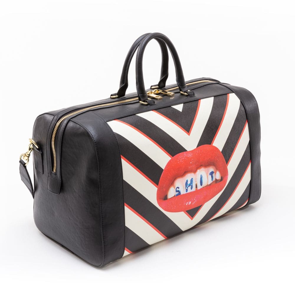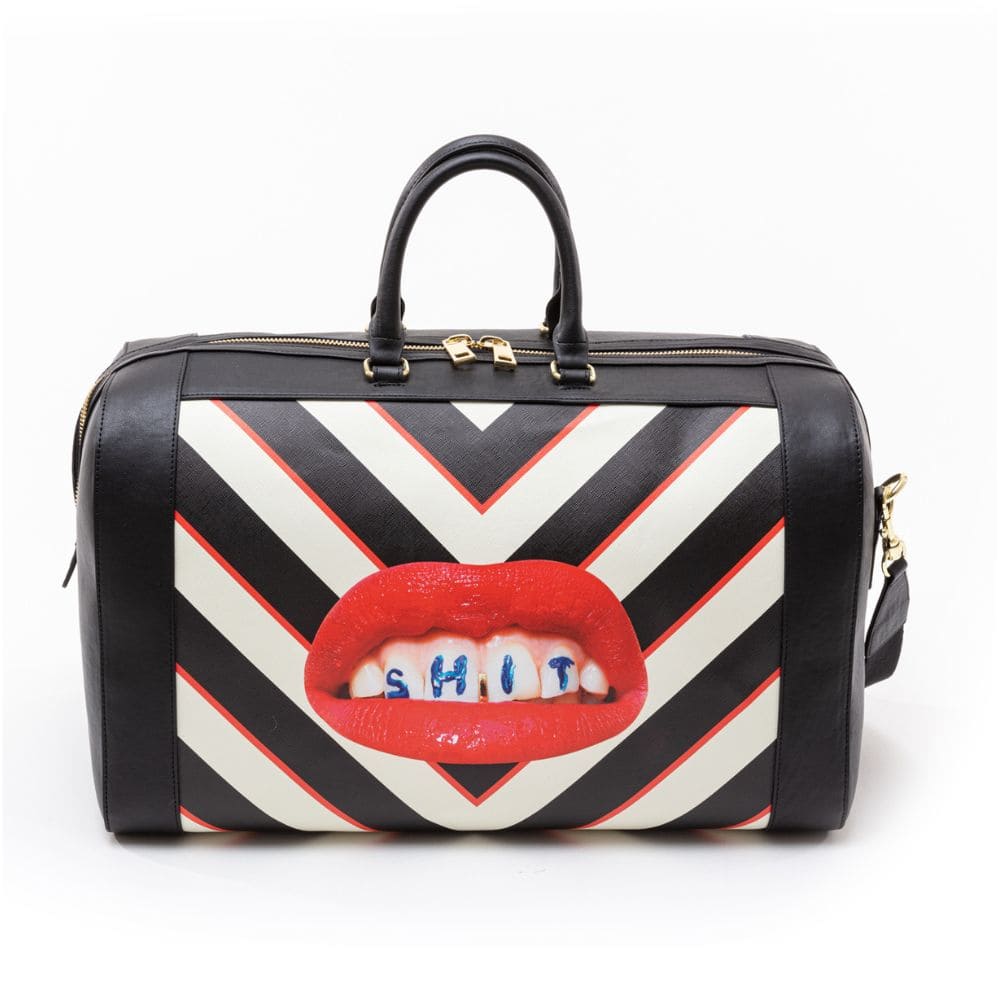 This designer weekender bag belongs to the celebrated Seletti Toiletpaper Travel collection, where functionality becomes visual art. Alongside other surreal patterns such as Seagirl, Snakes Black, and Lipsticks Black, the Shit edition captures Cattelan & Ferrari’s subversive humor at its finest. The “Teeth” motif evokes both laughter and fascination—a recurring theme in their creative language that blends pop imagery with psychological edge. Each bag is a portable art piece, designed to make every journey a story worth telling.