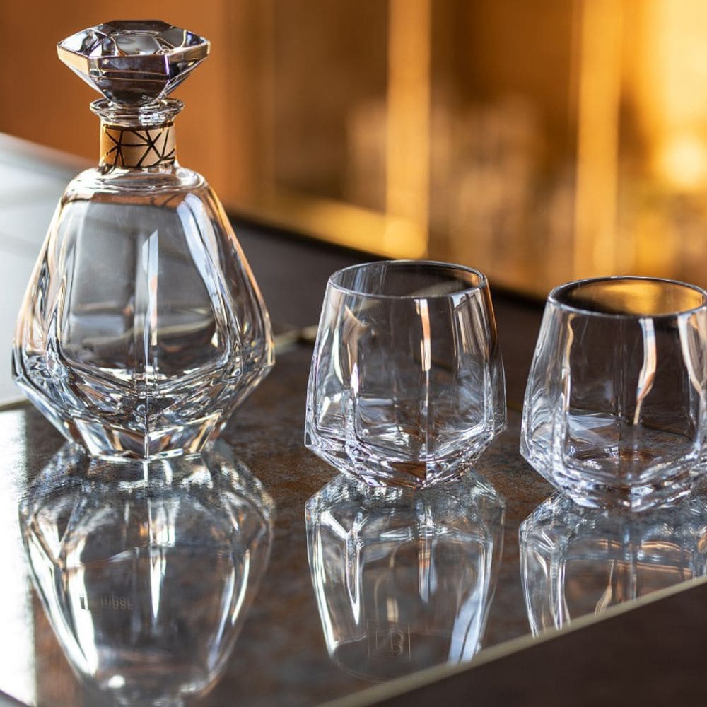 Set 2 Old Fashion glasses Gemstone, designed and produced by Vista Alegre. The Gemstone collection represents the innovative concept line of Vista Alegre which, with this line of decanters and glasses, brings luxury to the table. The sculptural aspect of this collection and the rare brightness of the crystal transform every toast into a moment of prestigious sociality. Discover the entire Gemstone collection and amaze your guests.
