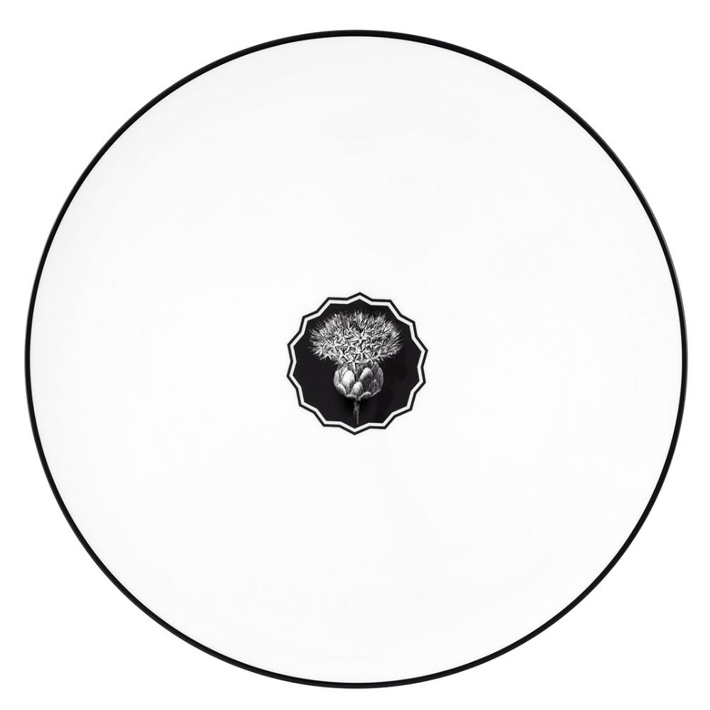 Herbariae charger plate white, designed by Christian Lacroix for Vista Alegre. The Herbariae charger plate white, finely decorated with a flower and a black border that give a touch of unique elegance thanks to the contrast of colors, is the ideal element to make your table unique. The Herbariae collection takes inspiration from five flowers (the poppy, the narcissus, the lotus, the dahlia and the thistle) and makes them protagonists of the entire line representing them in the style of ancient herbariums and combining them with soft colors, thus evoking a watercolor effect. Discover the entire Herbariae collection and make every occasion unique.
